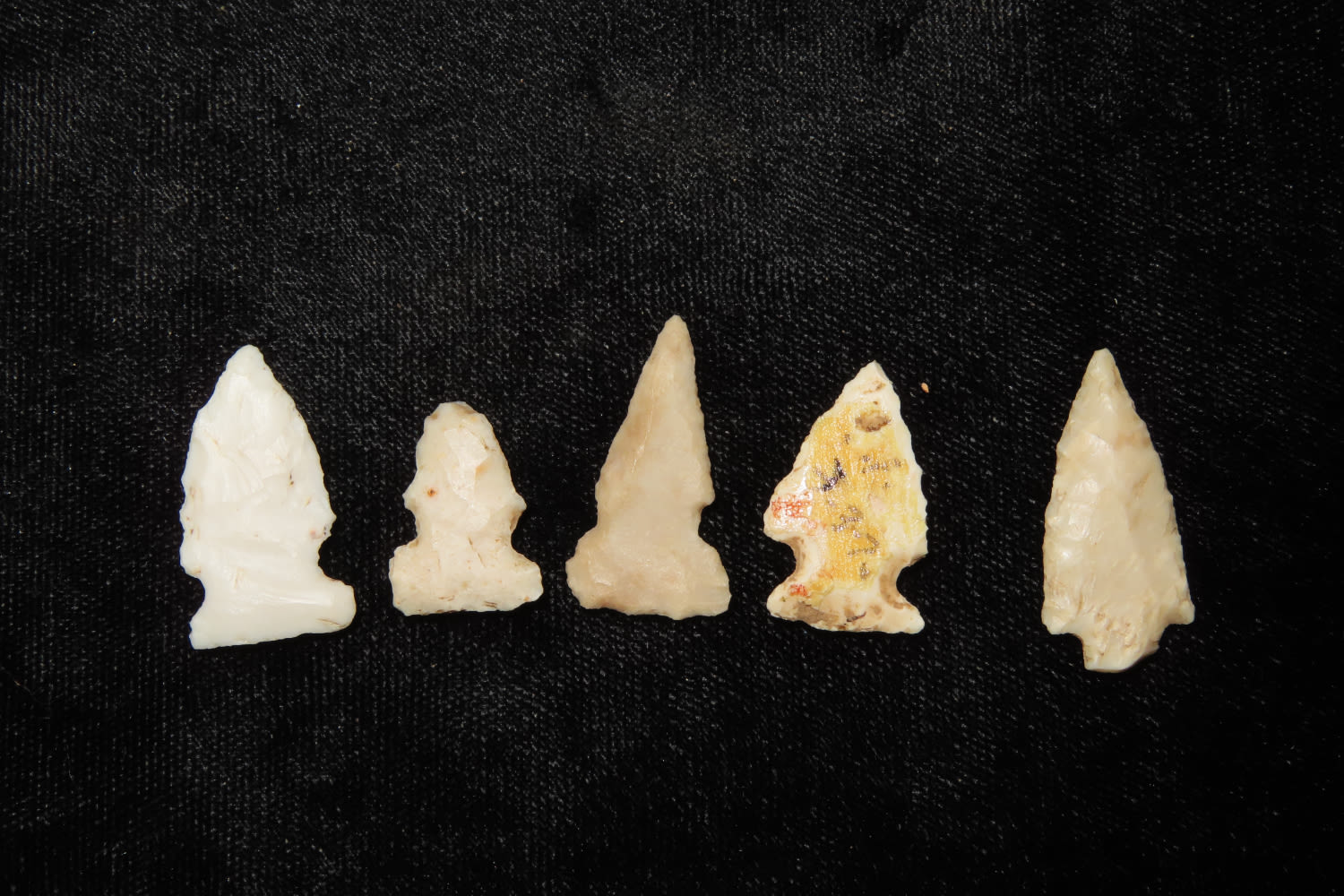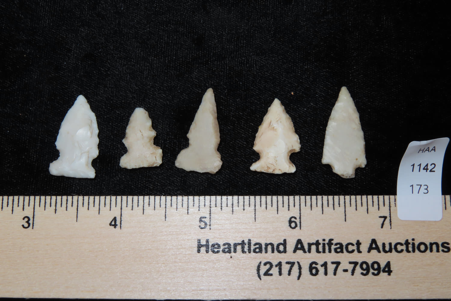 LOT OF 5 CAHOKIA BIRD POINTS FROM MADISON / ST CLAIR COUNTY ILLINOIS, INDIAN ARROWHEAD, ARTIFACT
