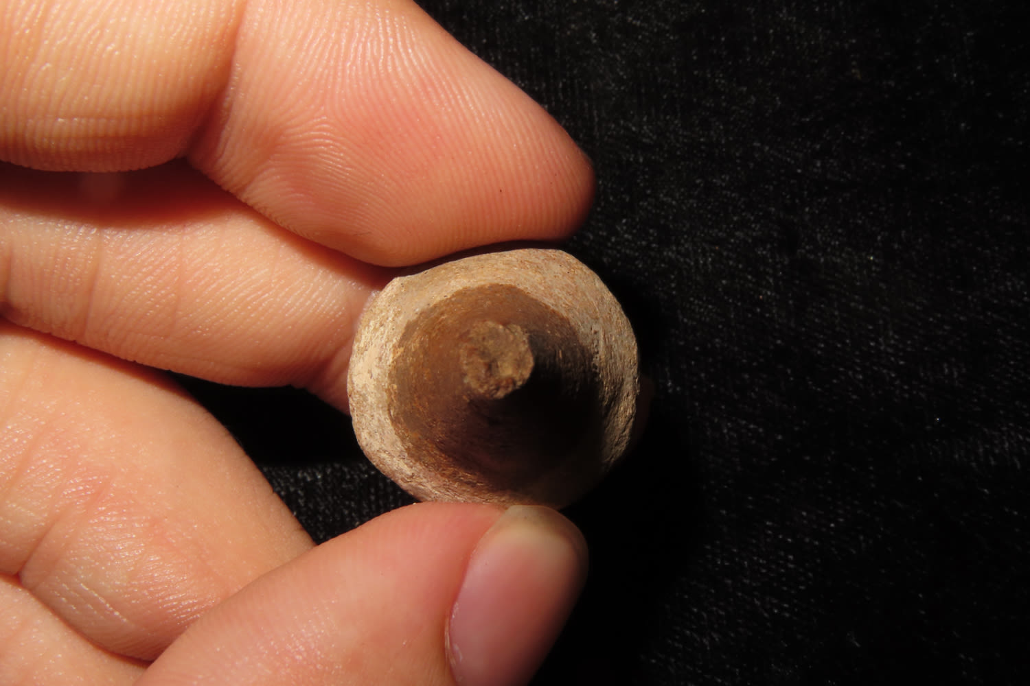 NICE POTTERY EAR PLUG EARRING FOUND BY DUB LYERLY IN CRAIGHEAD COUNTY ARKANSAS, INDIAN ARROWHEAD, ARTIFACT
