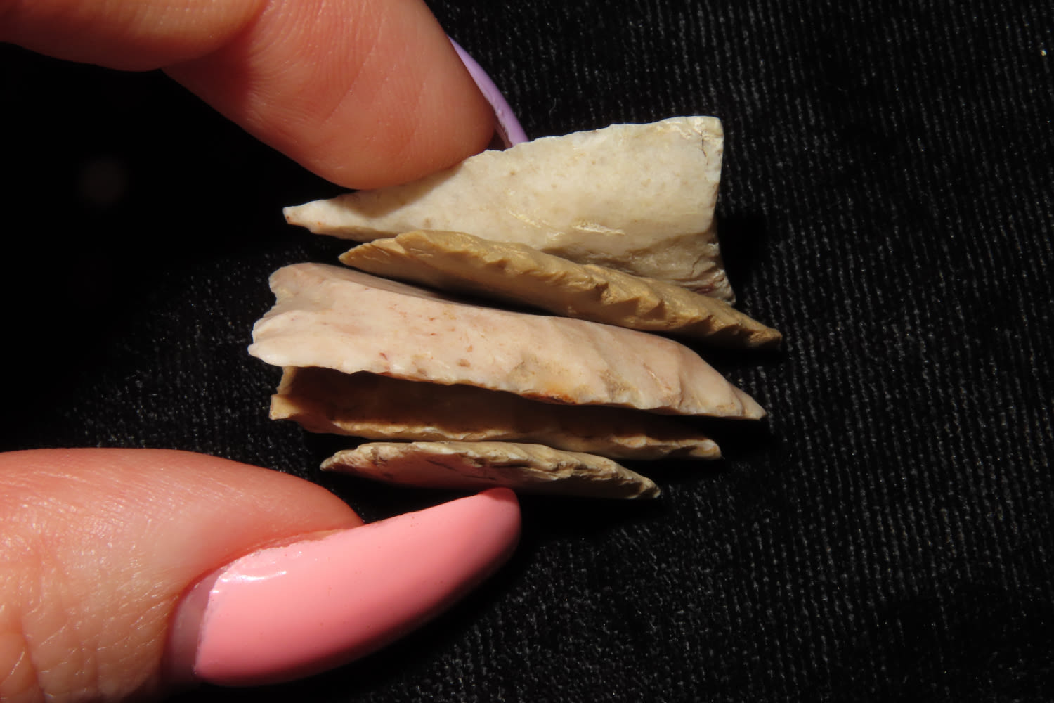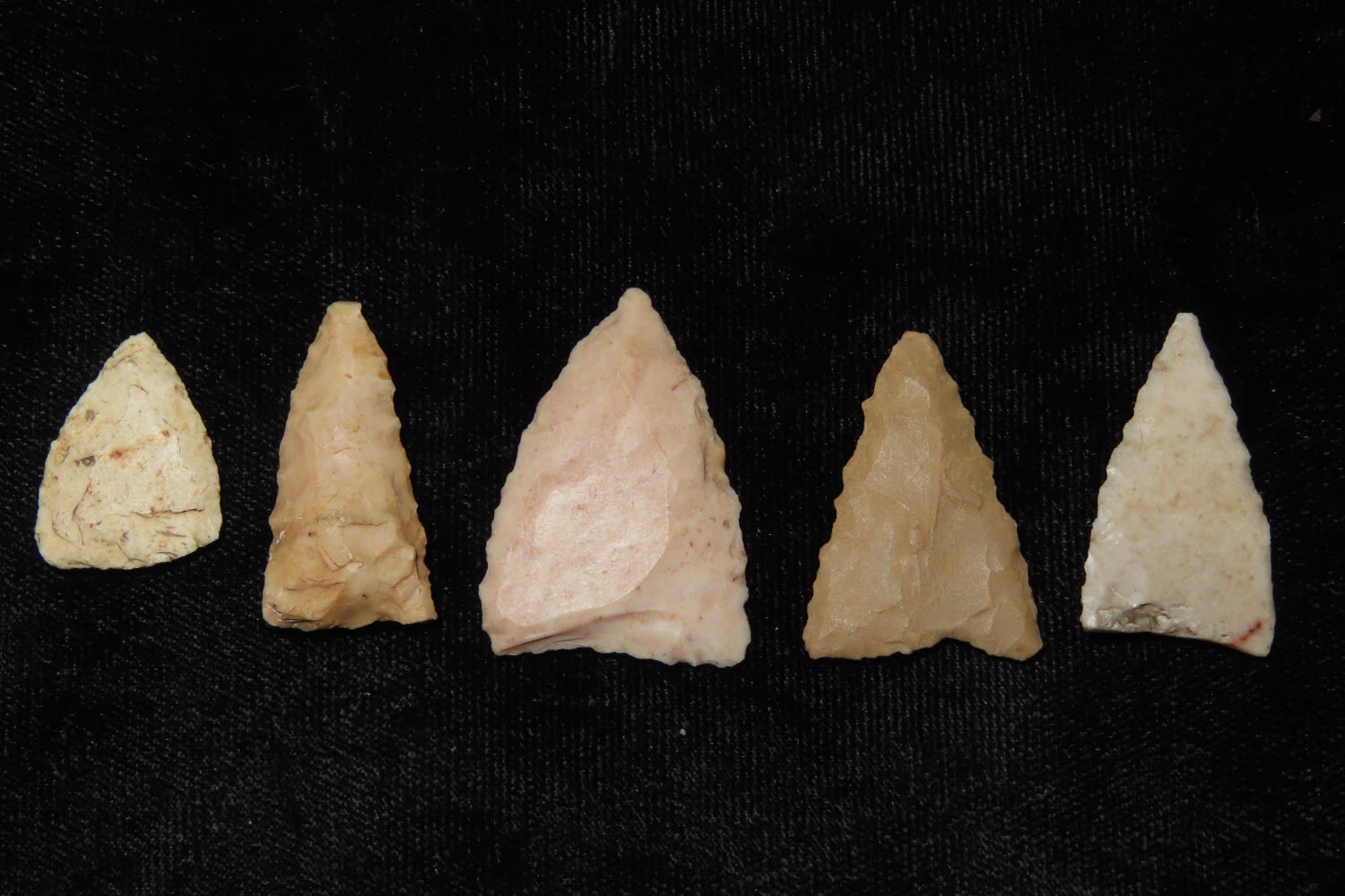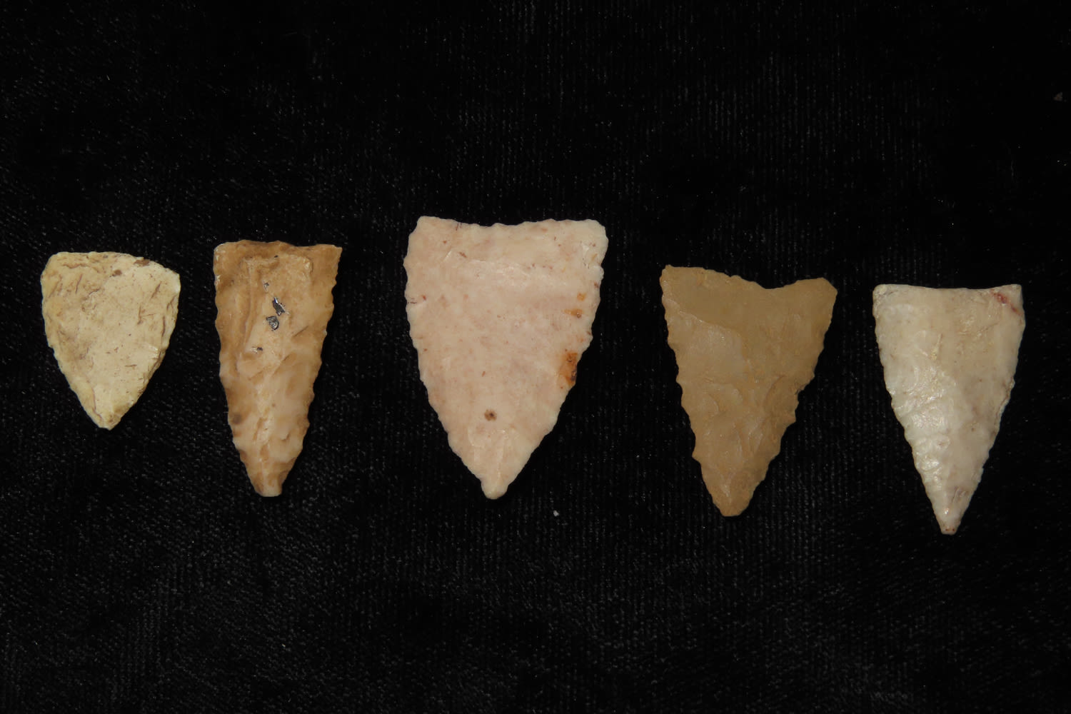 LOT OF 5 CAHOKIA BIRD POINTS FROM MADISON / ST CLAIR COUNTY ILLINOIS, INDIAN ARROWHEAD, ARTIFACT