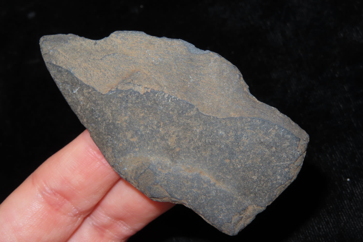 2 7/8″ LONG SLATE ARROWHEAD FROM ALASKA, ESKIMO HARPOON SPEAR TIP