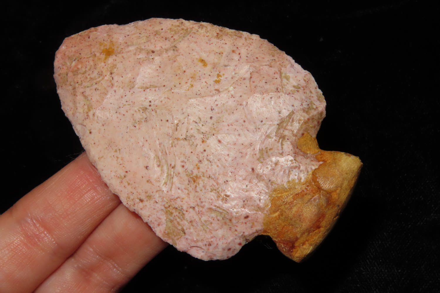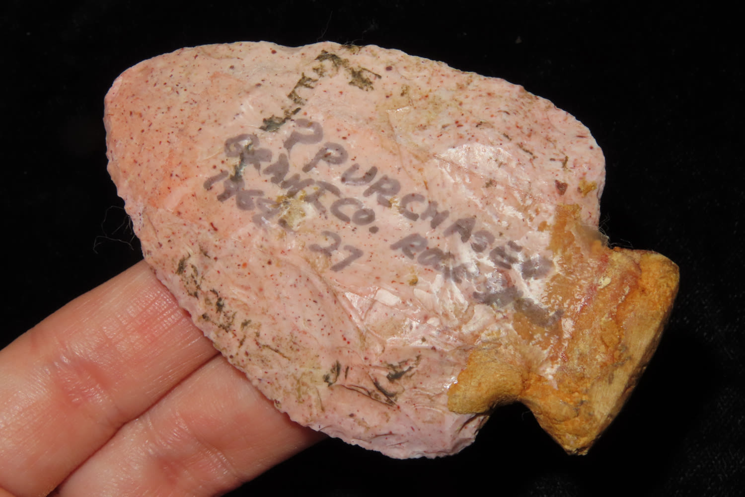 3″ HOPEWELL SNYDERS FOUND IN GRANT COUNTY INDIANA IN 1969, RESTORED BASE, INDIAN ARROWHEAD, ARTIFACT