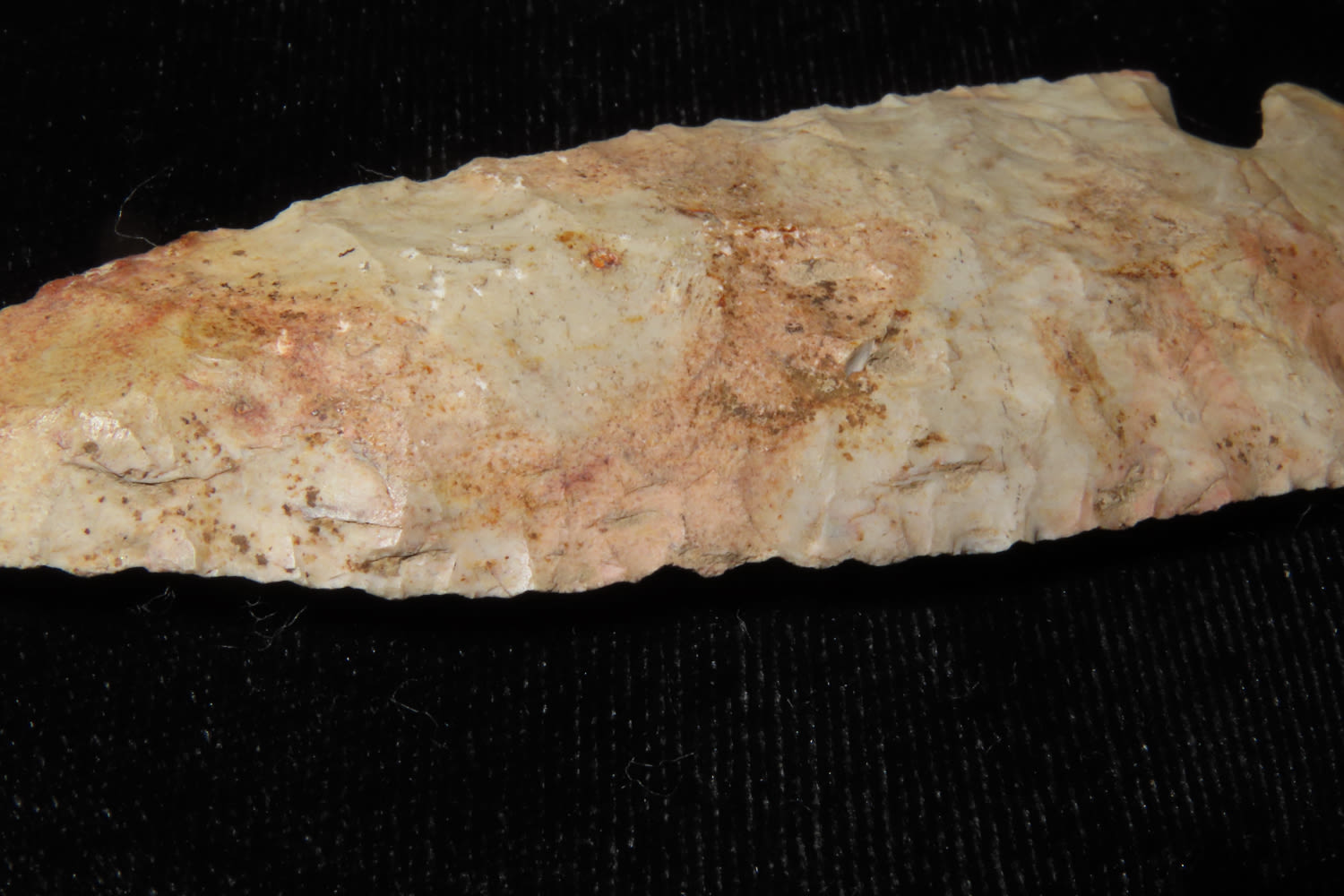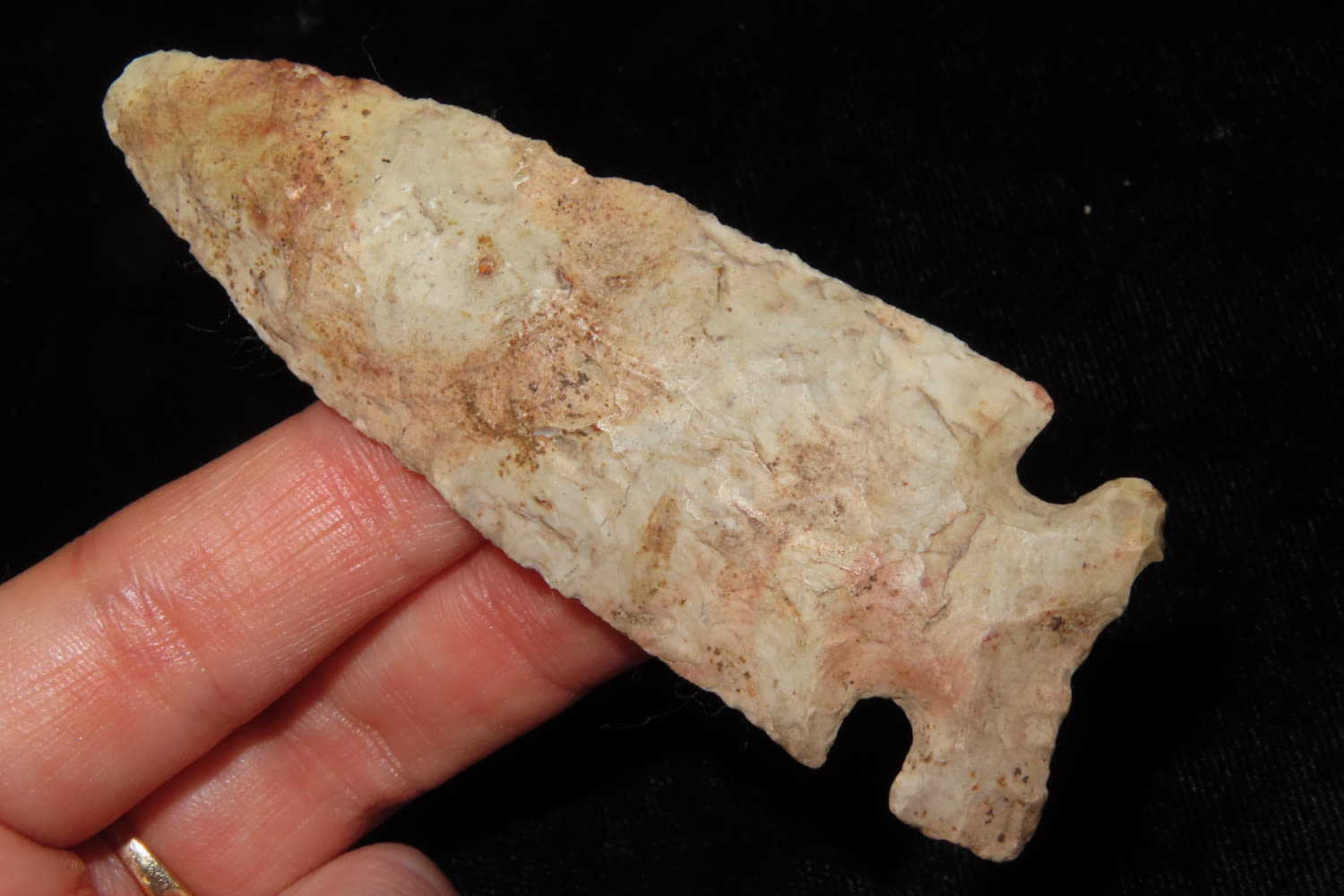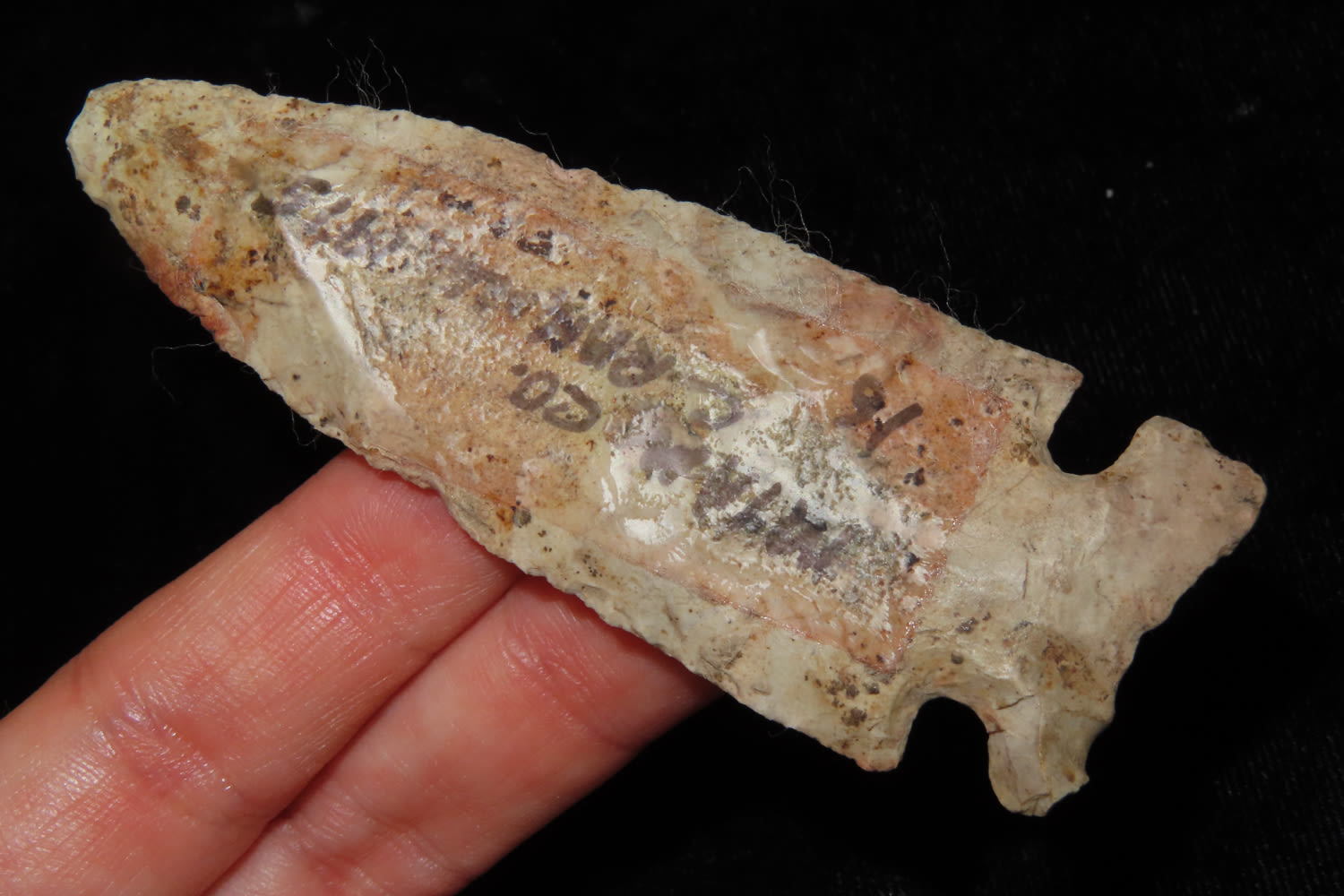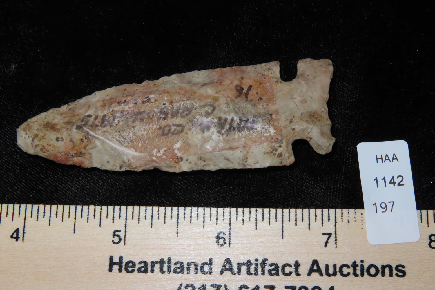 3 1/4″ BIG SANDY FOUND BY C. RAHILL IN MIAMI COUNTY INDIANA IN 1975, INDIAN ARROWHEAD, ARTIFACT