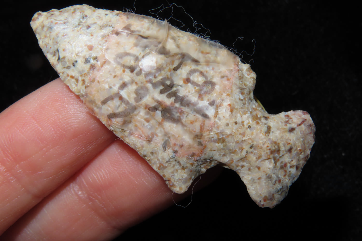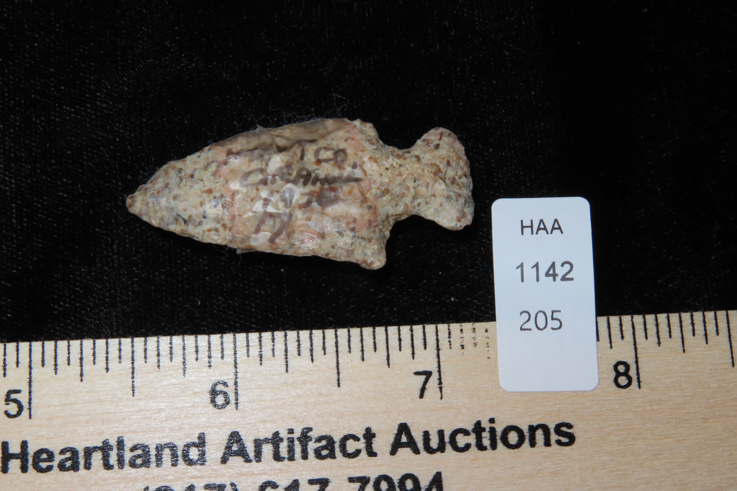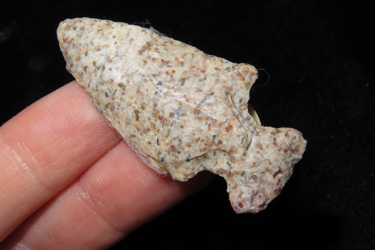 COLORFUL 1 7/8″ TABLEROCK FOUND IN HUNTINGTON COUNTY INDIANA IN 1970 BY C. RAHILL, INDIAN ARROWHEAD, ARTIFACT