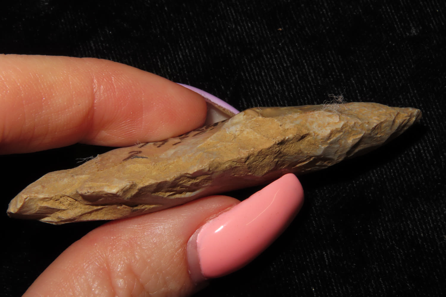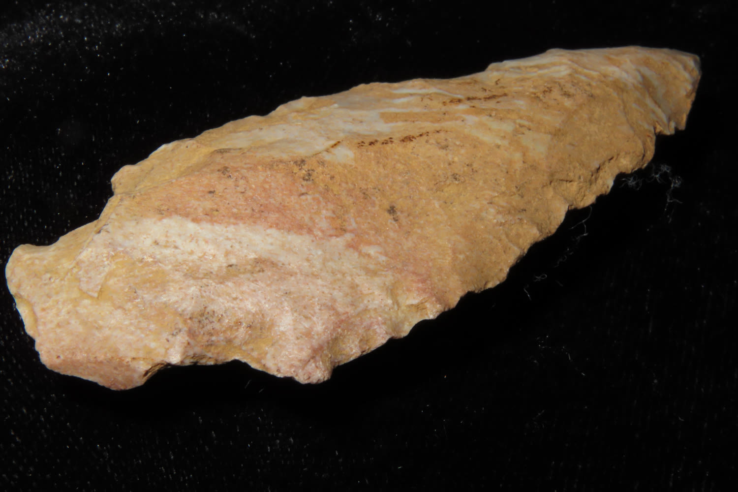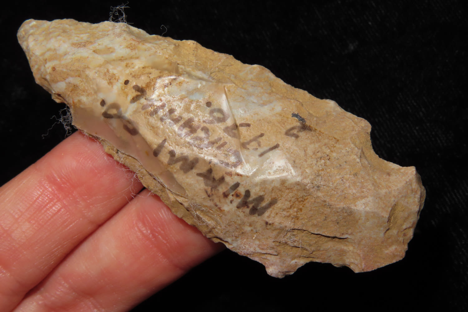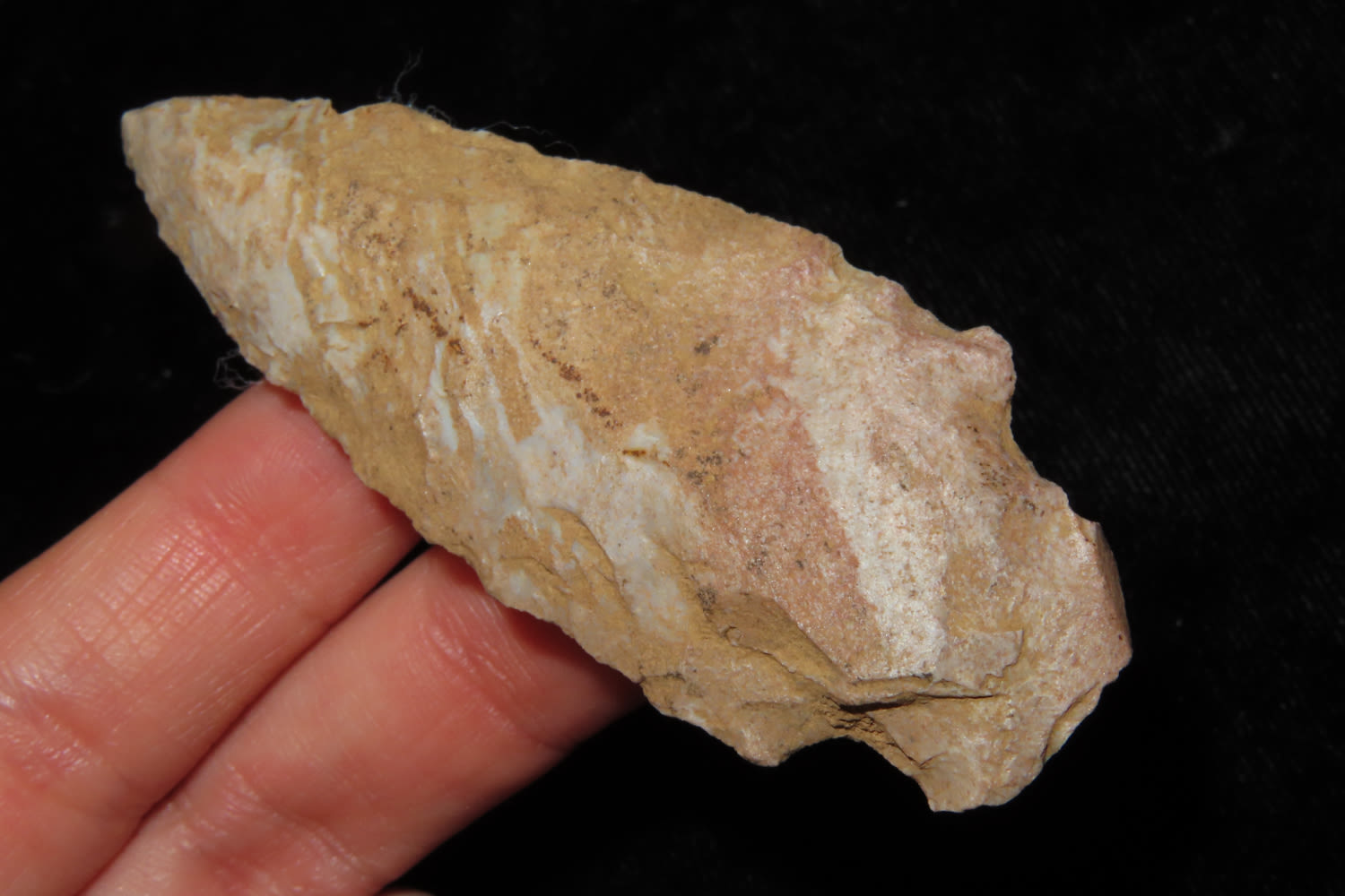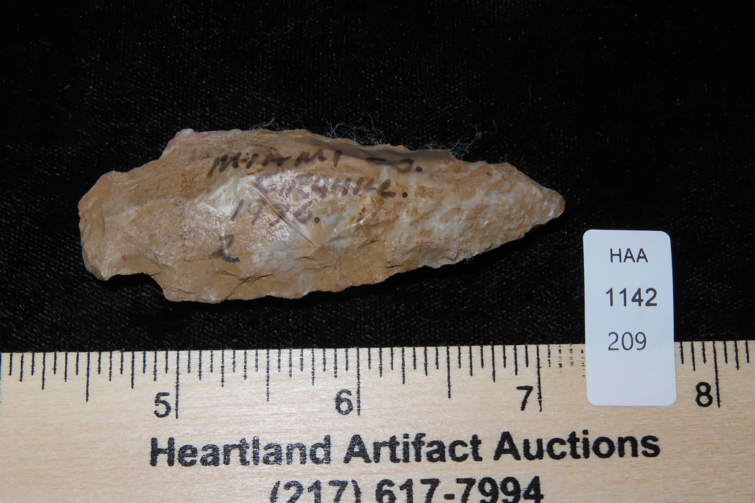 2 7/8″ BENTON FOUND BY C. RAHILL IN MIAMI COUNTY INDIANA IN 1976, INDIAN ARROWHEAD, ARTIFACT