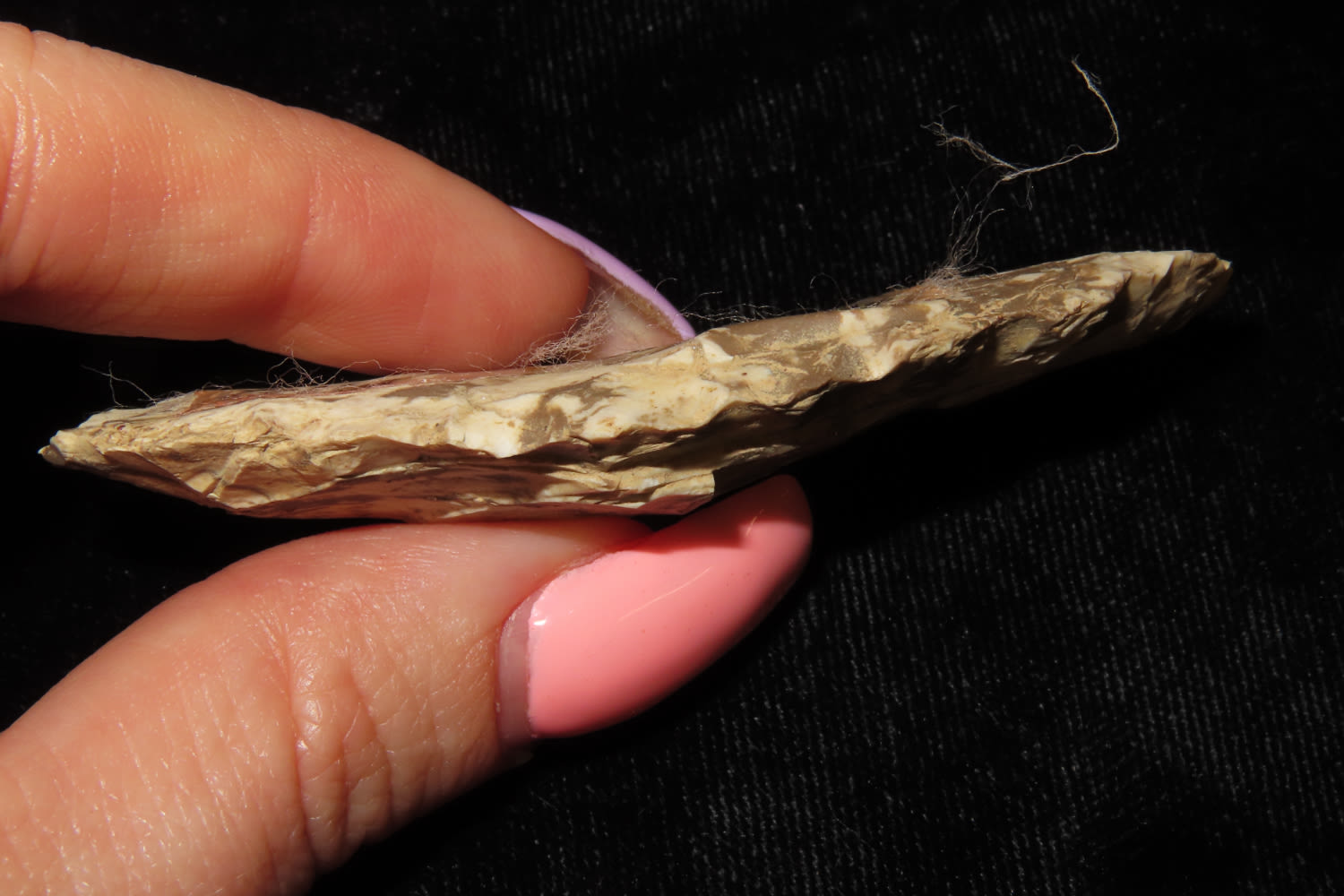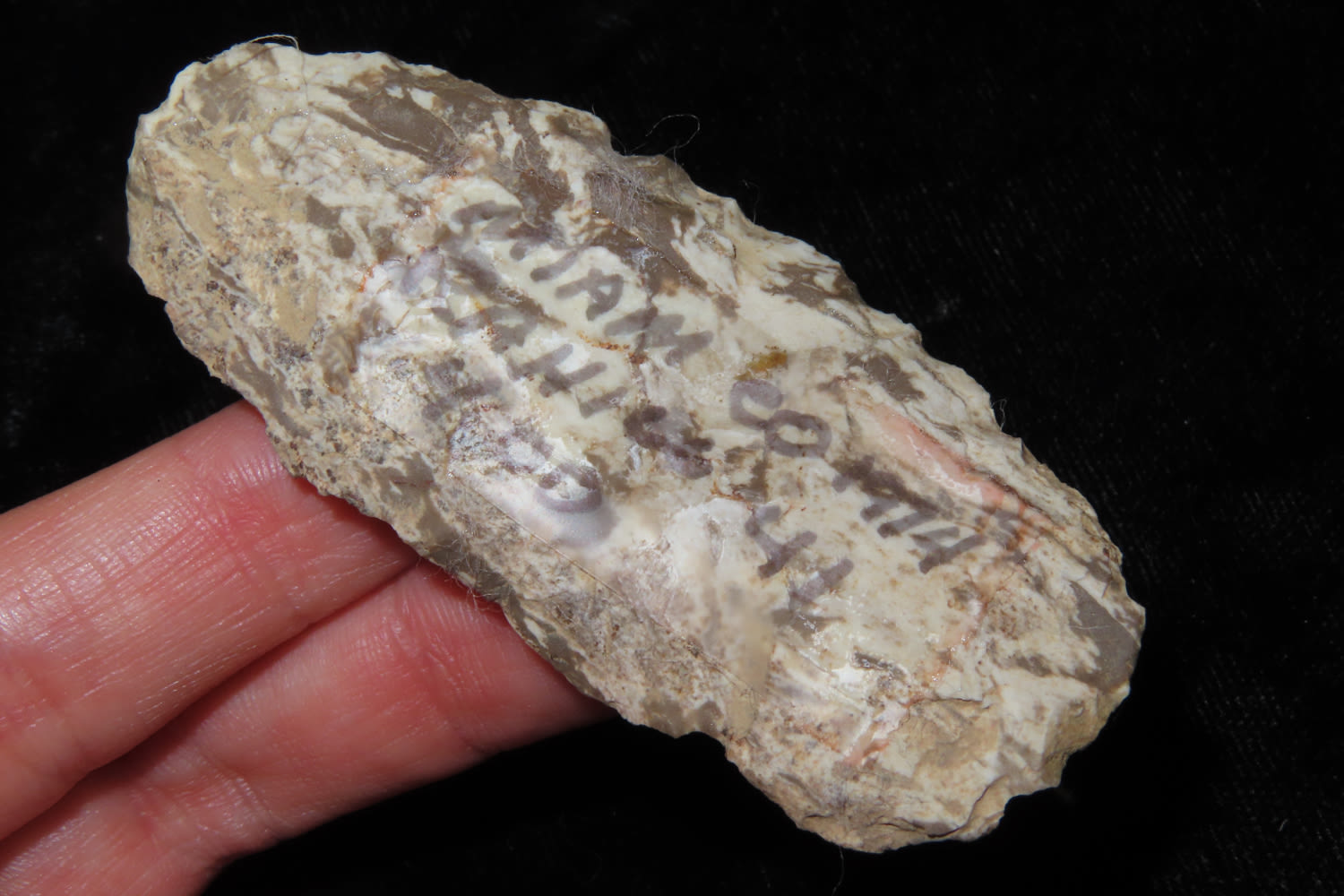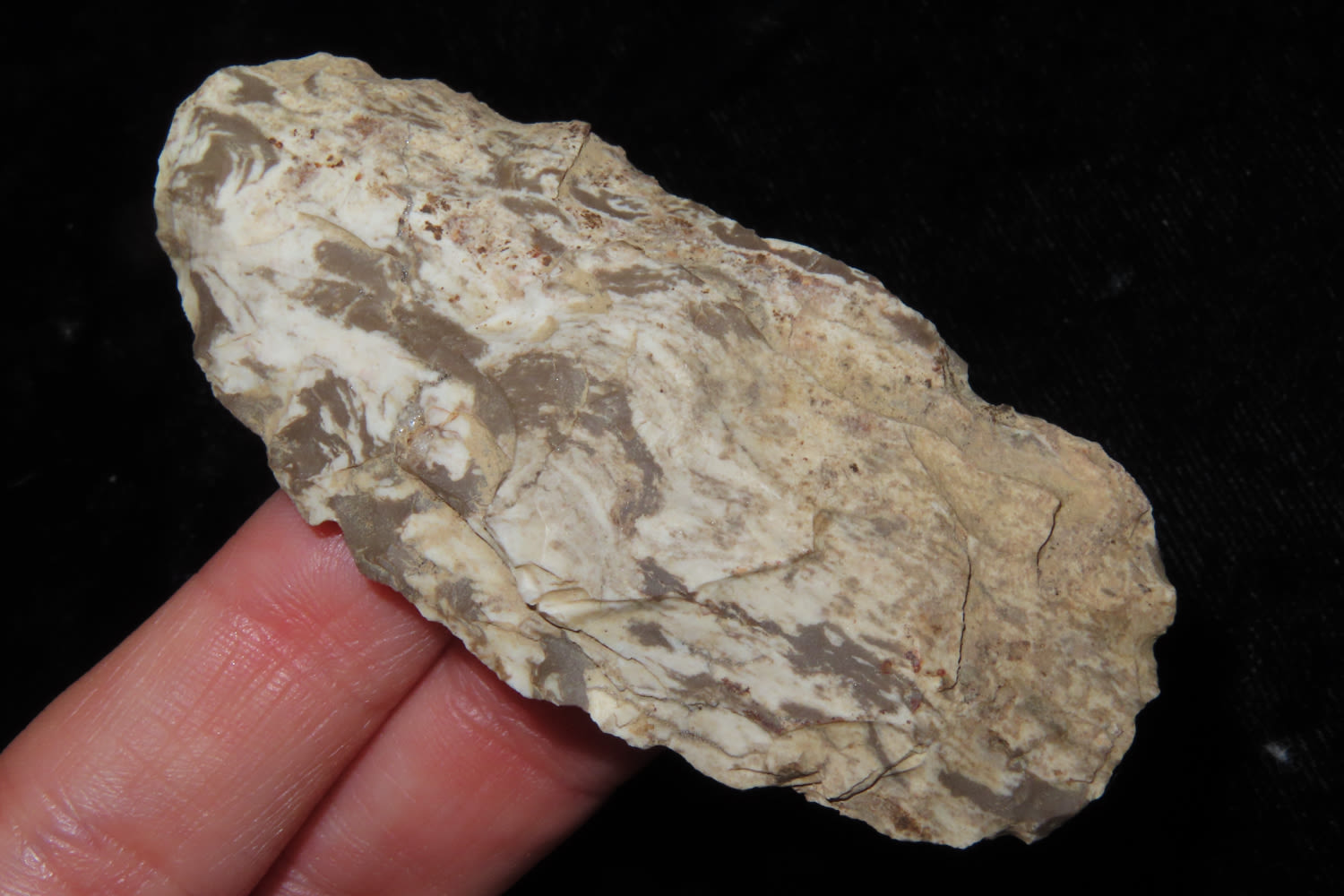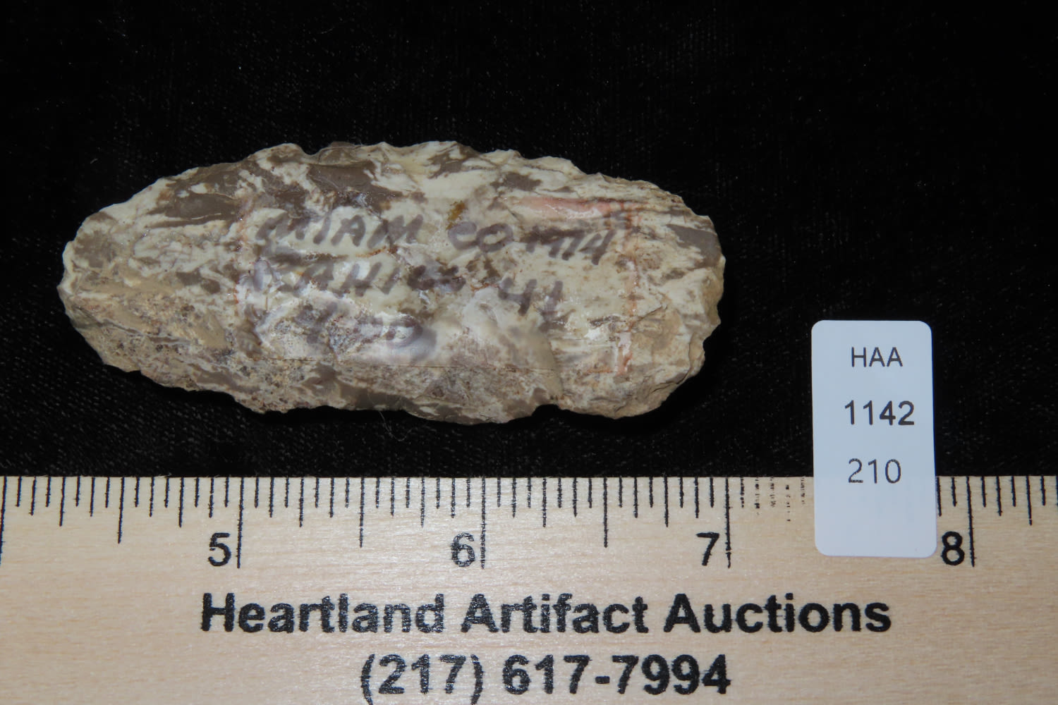 COLORFUL 2 7/8″ PALEO KNIFE FOUND BY C. RAHILL IN MIAMI COUNTY INDIANA IN 1974, INDIAN ARROWHEAD, ARTIFACT