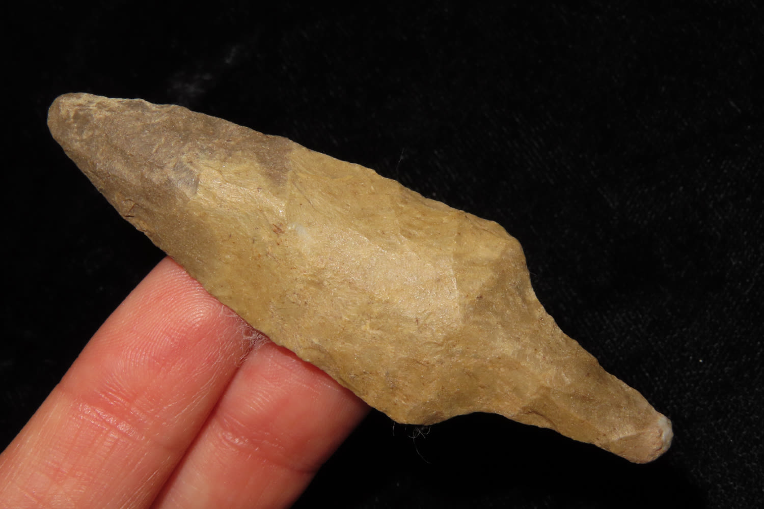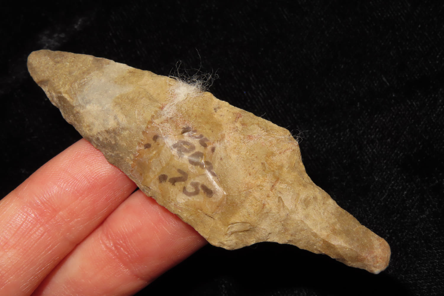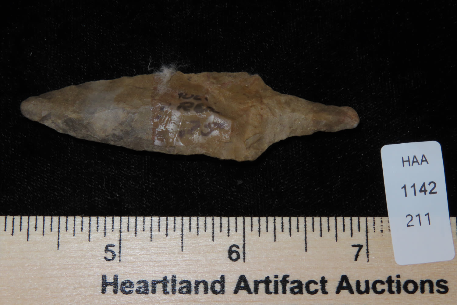AMAZING 2 7/8″ WAUBESA FOUND BY C. RAHILL IN WABASH COUNTY INDIANA IN THE 1960’S & 70’S, INDIAN ARROWHEAD, ARTIFACT
