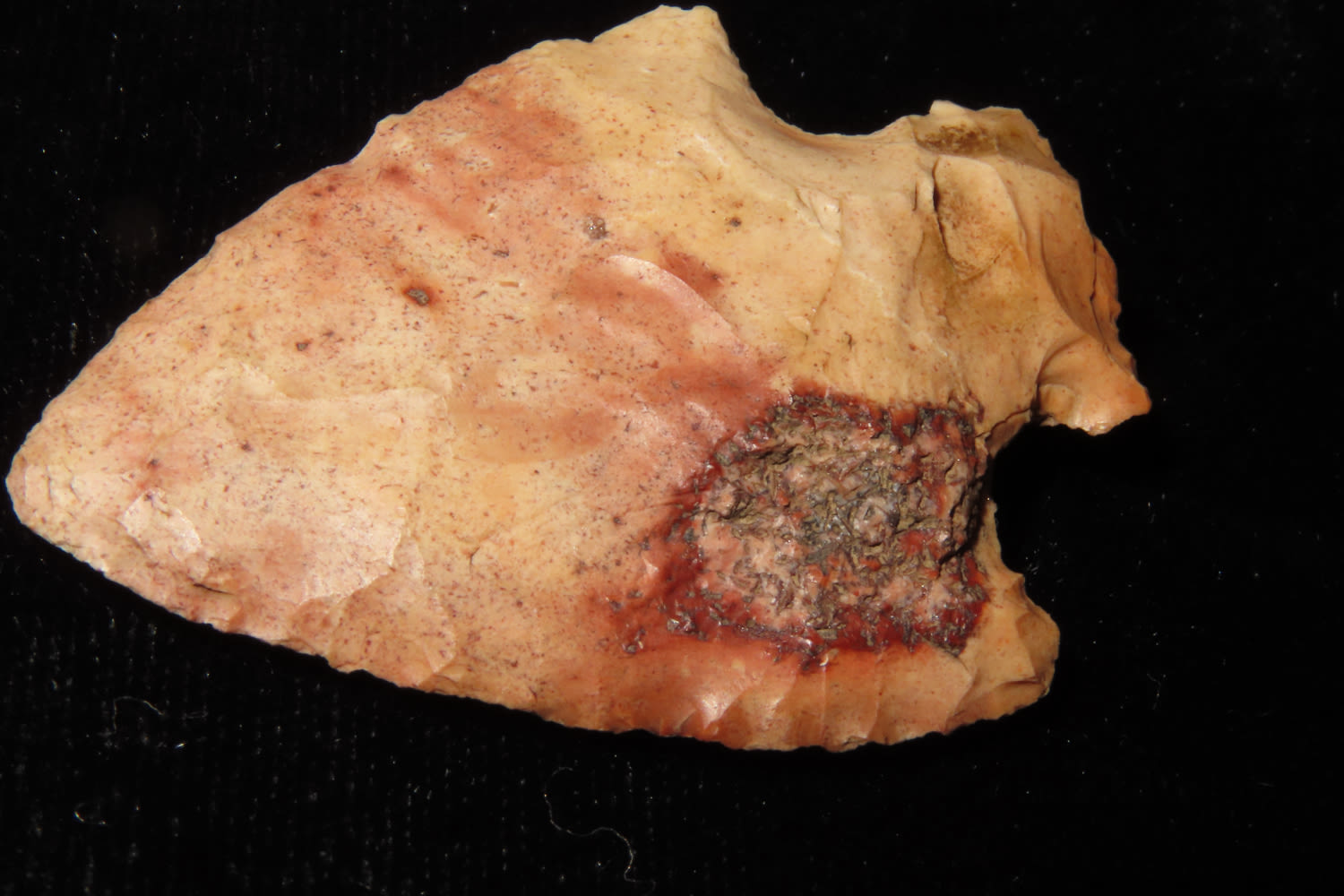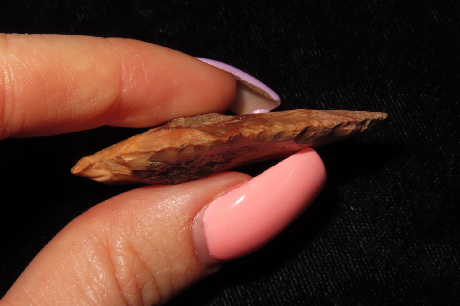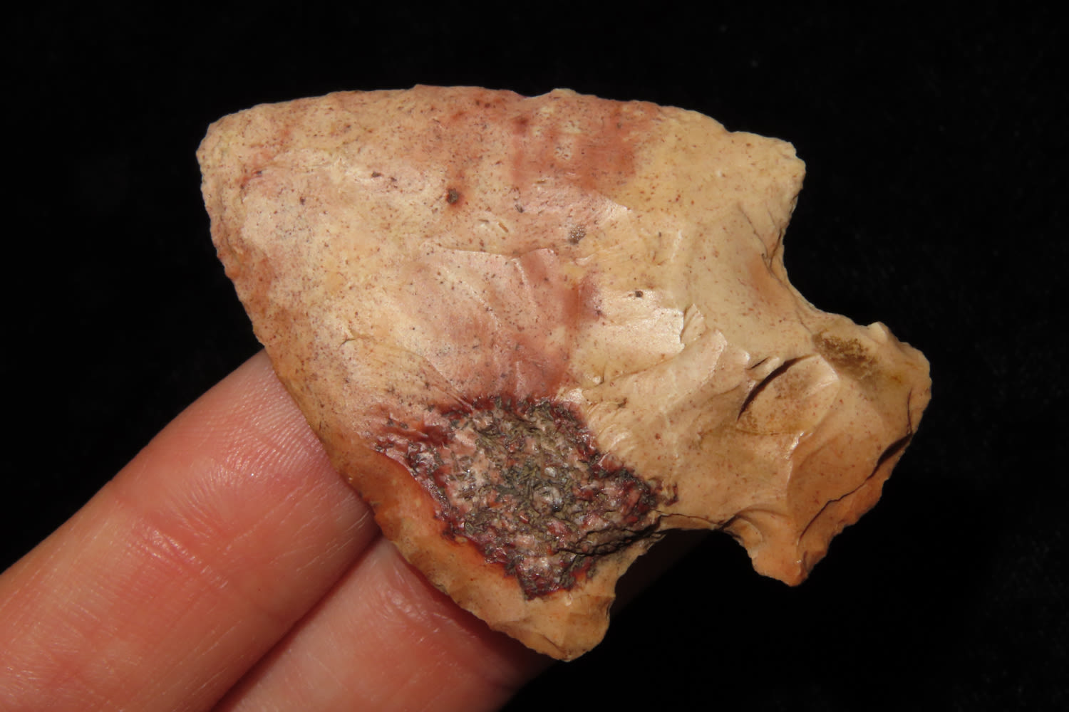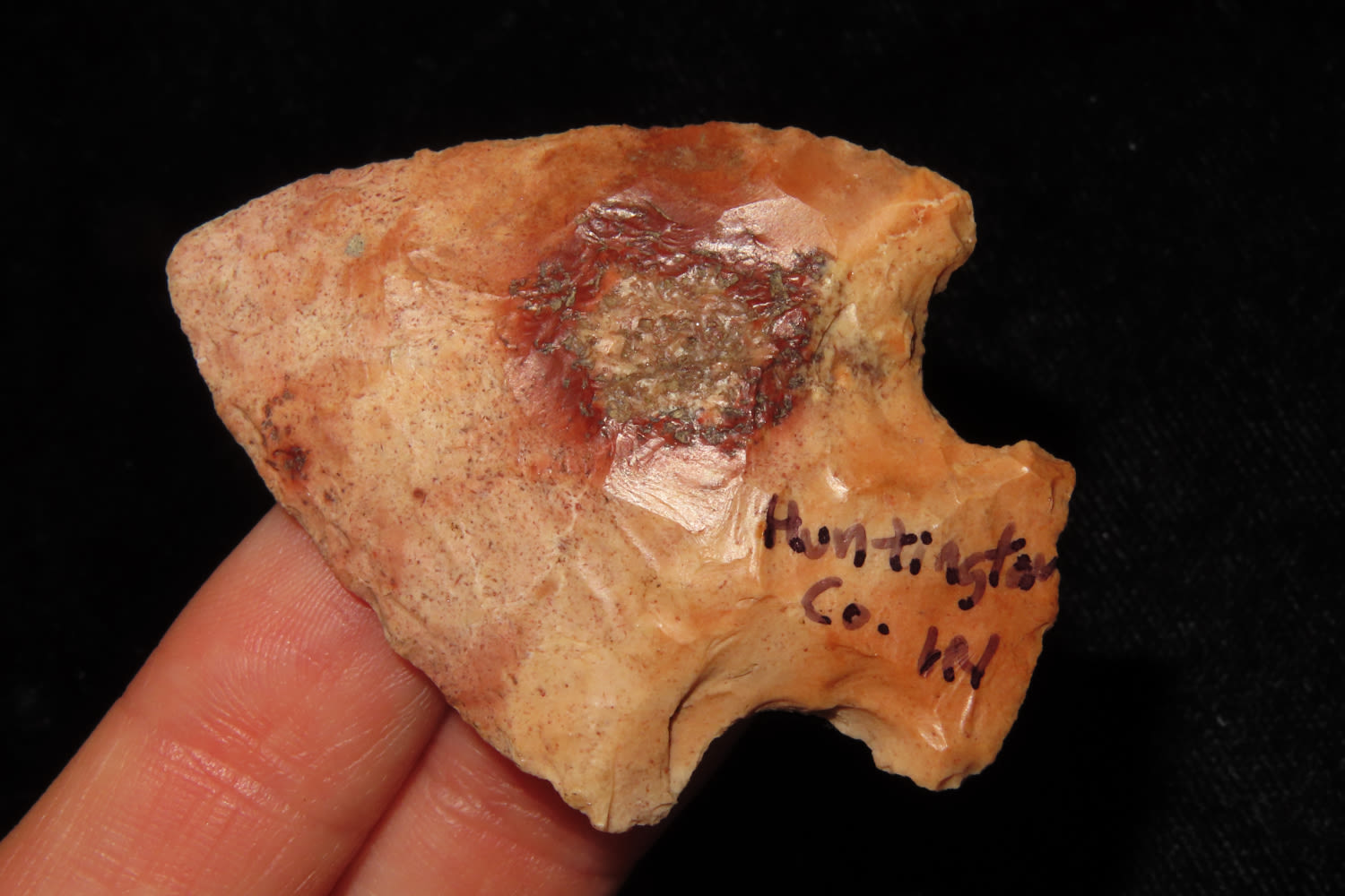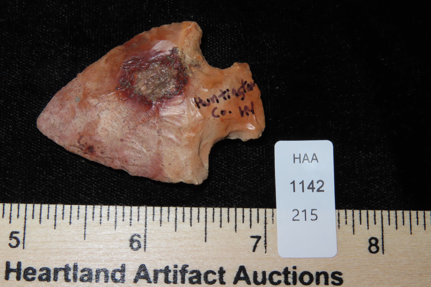 COLORFUL 2″ HOPEWELL SNYDERS FOUND BY C. RAHILL IN HUNTINGTON COUNTY INDIANA IN THE 70’S, INDIAN ARROWHEAD, ARTIFACT