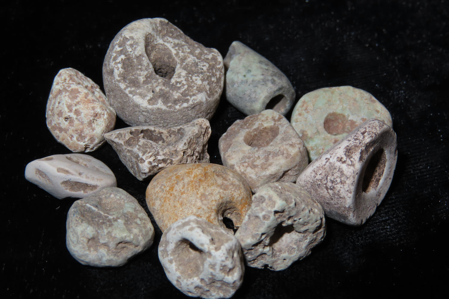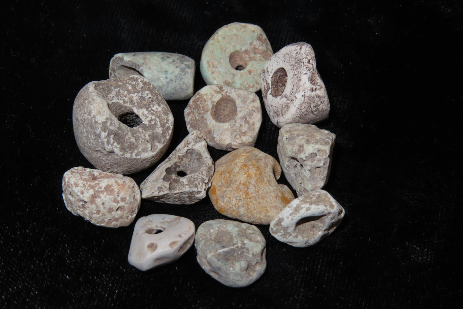 LOT OF DRILLED STONE BEADS, PRE-COLUMBIAN, FROM MEXICO