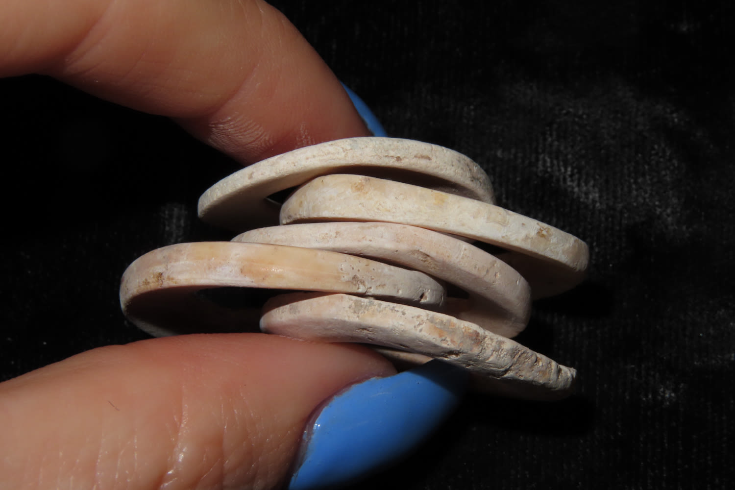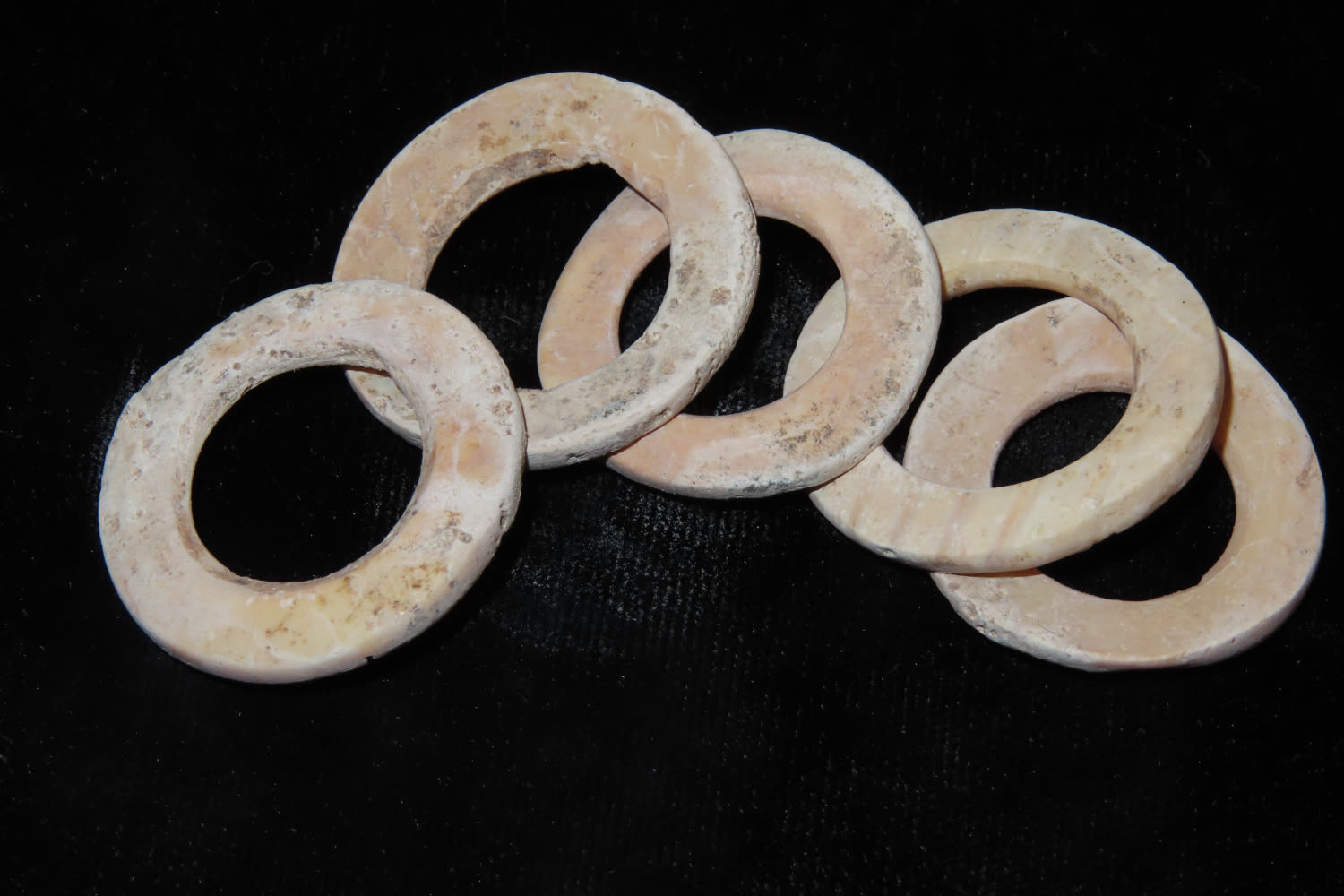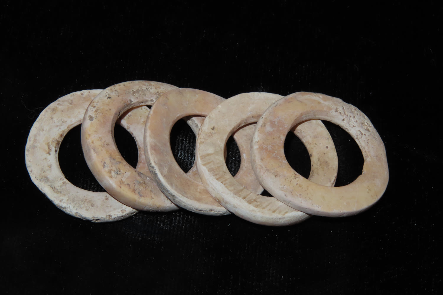 LOT OF 5 LARGE PRE-COLUMBIAN SHELL DISC BEADS FROM MEXICO