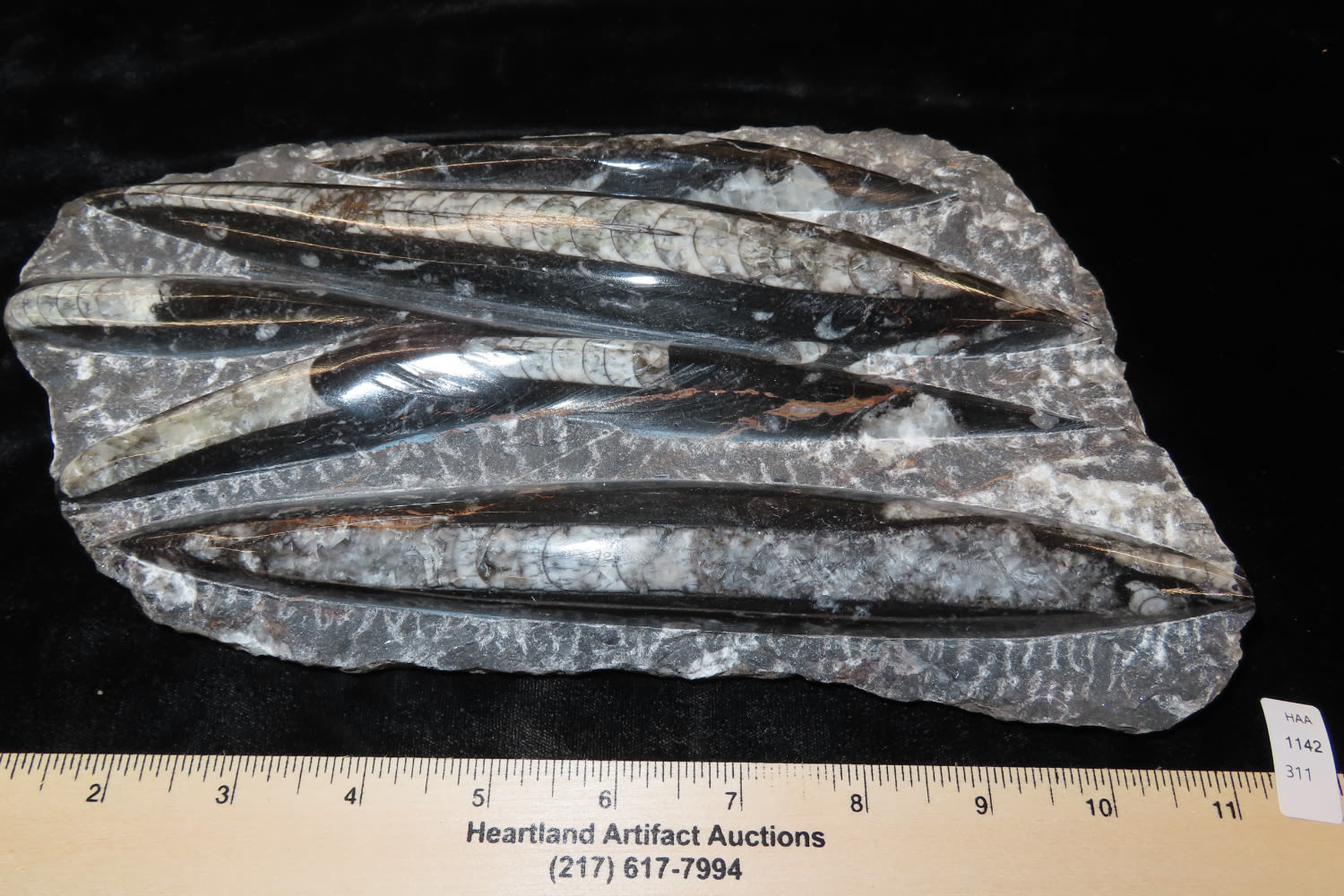 HUGE 11″ LONG ORTHOCERAS FOSSIL FORMATION, NICE LARGE PIECE THAT DISPLAYS GREAT