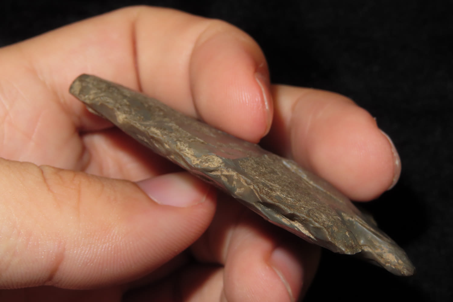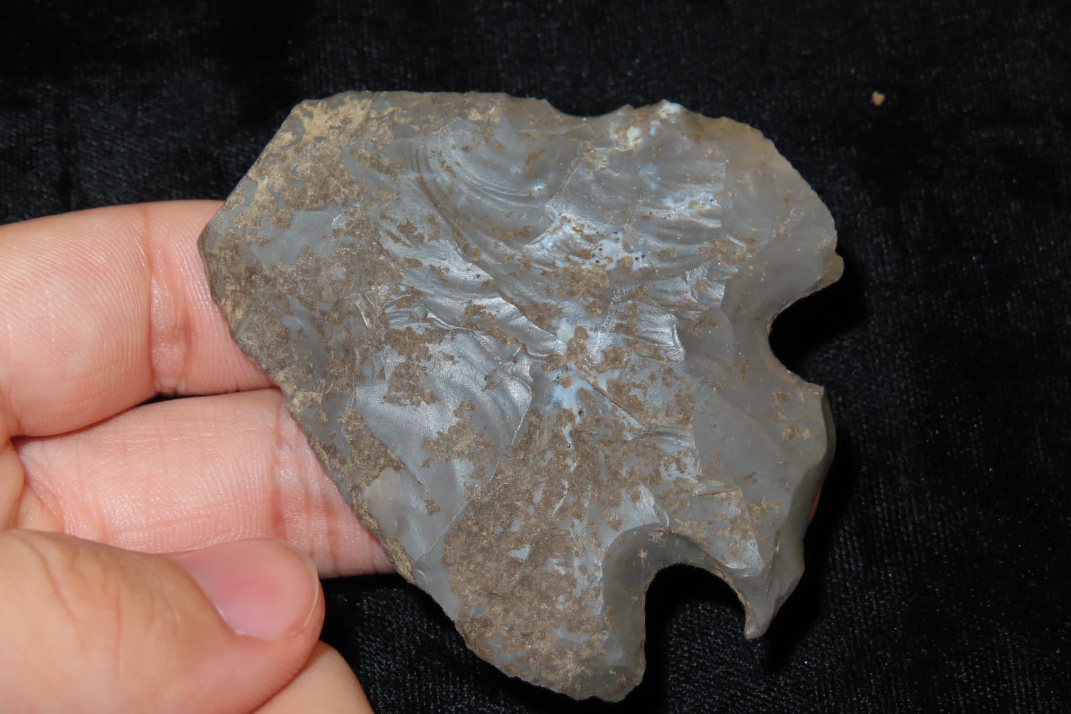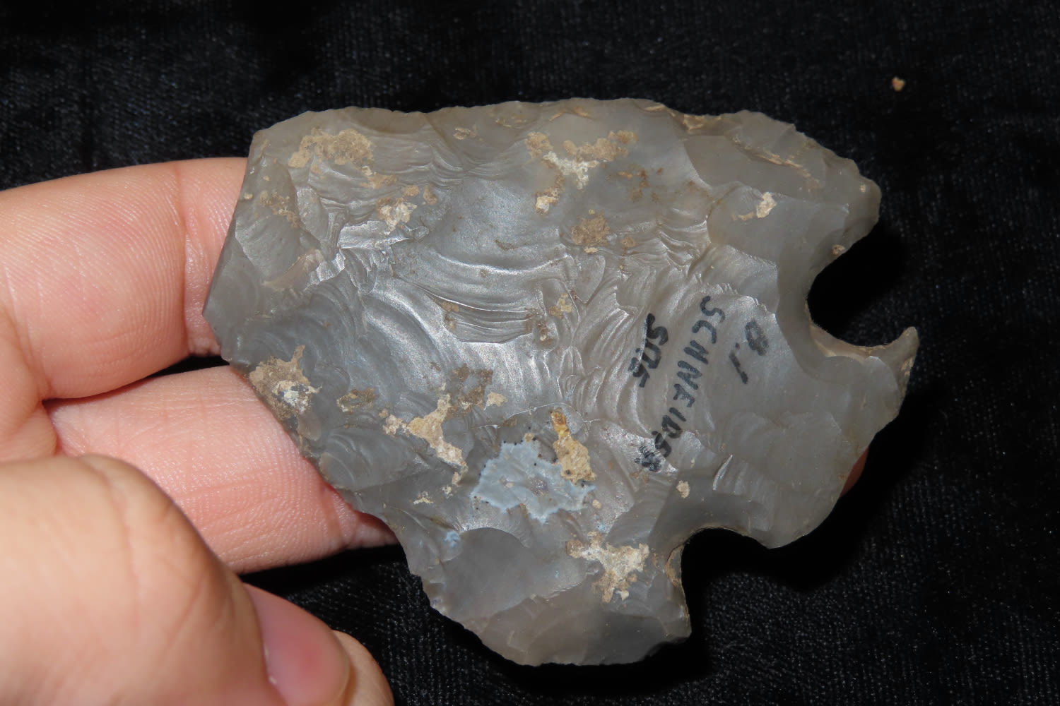 2 5/8″ HOPEWELL SNYDERS FOUND AT THE SCHNEIDER SITE, CALHOUN COUNTY ILLINOIS, INDIAN ARROWHEAD, ARTIFACT
