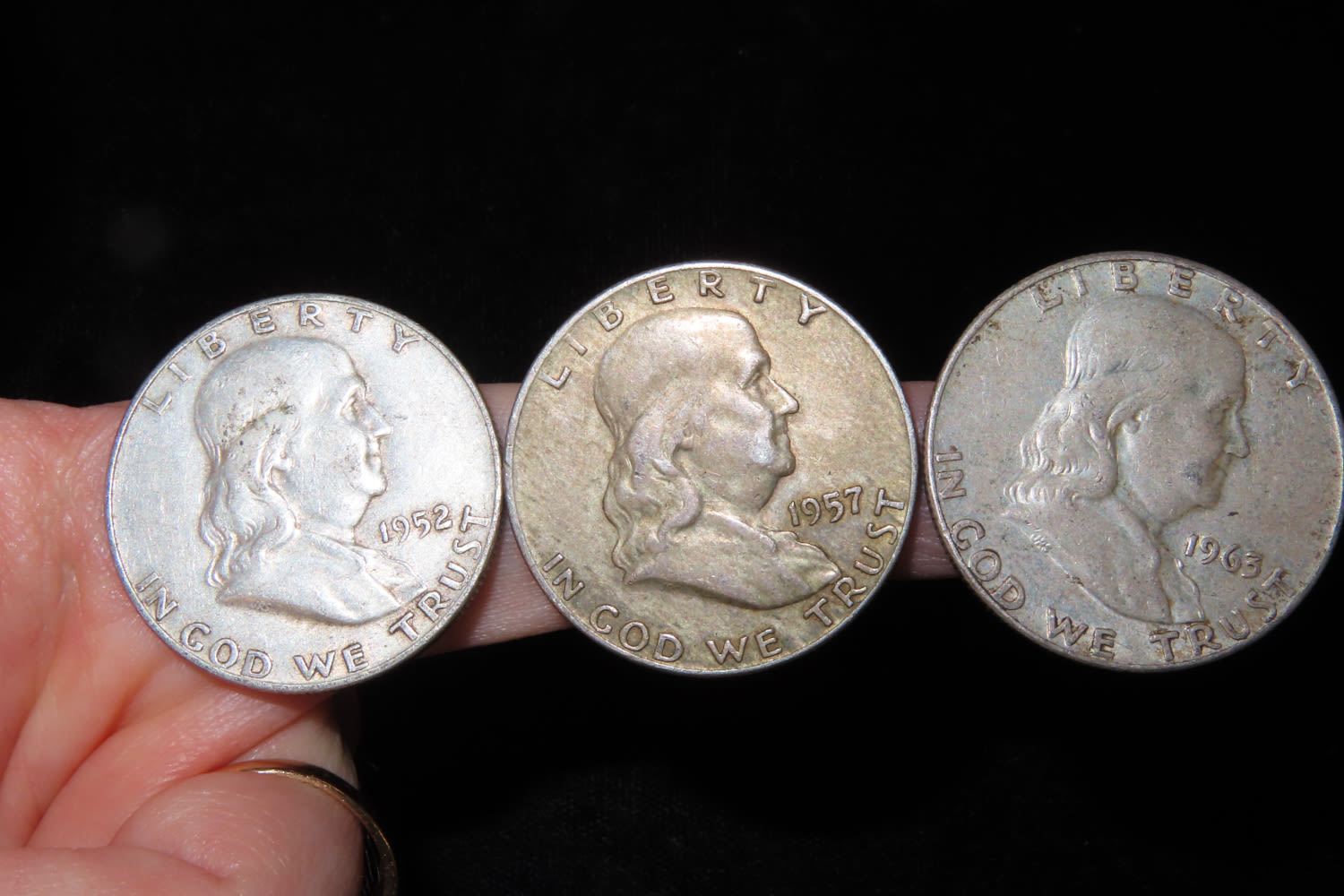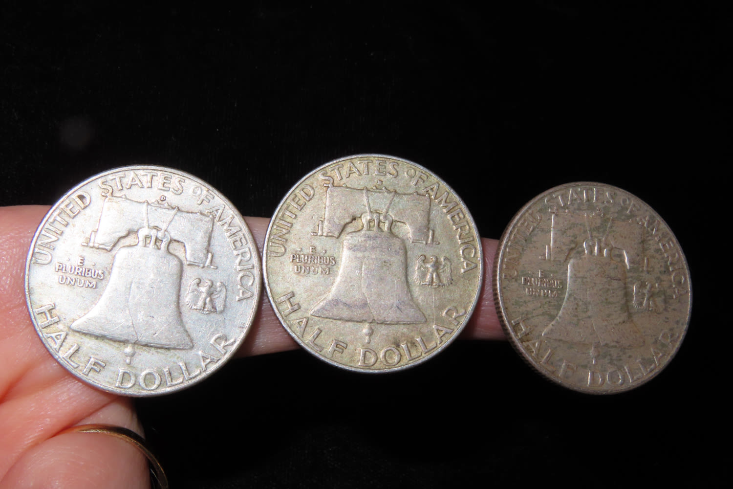 LOT OF 3 FRANKLIN SILVER HALF DOLLARS. ALL DIFFERENT