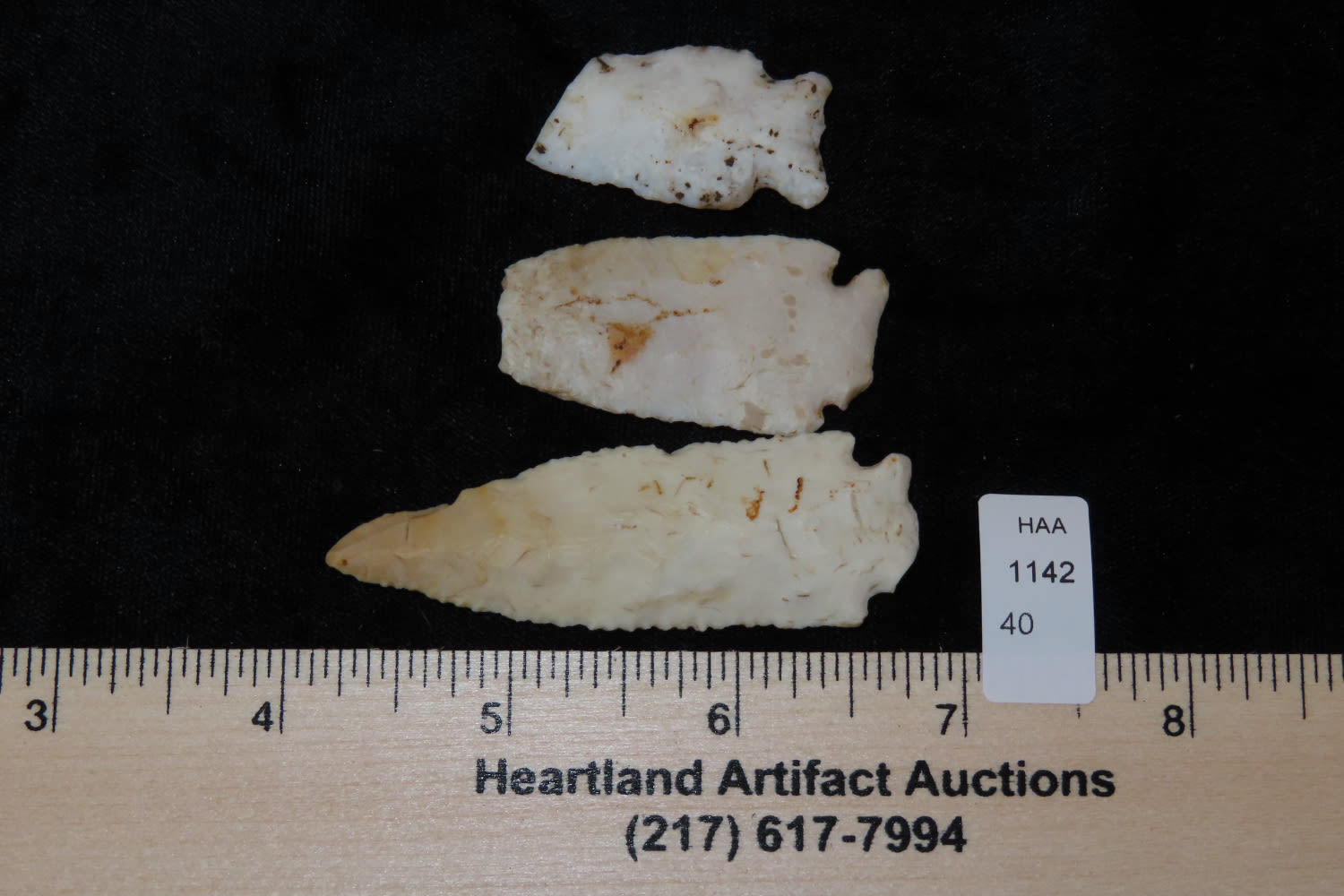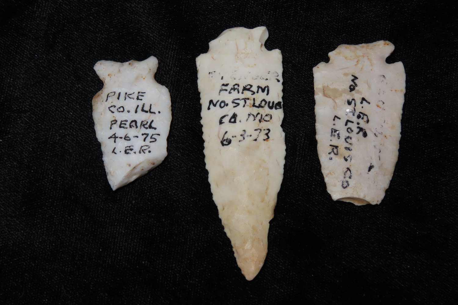 LOT OF 3 POINTS FOUND BY LLOYD ROSE IN ILLINOIS, INDIAN ARROWHEAD, ARTIFACT