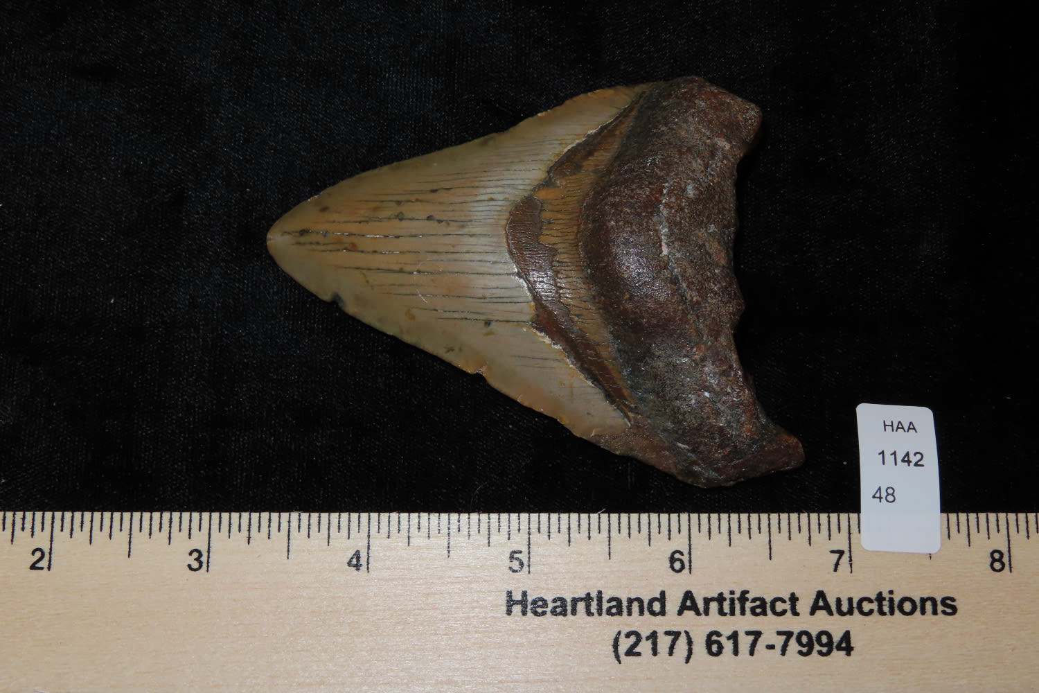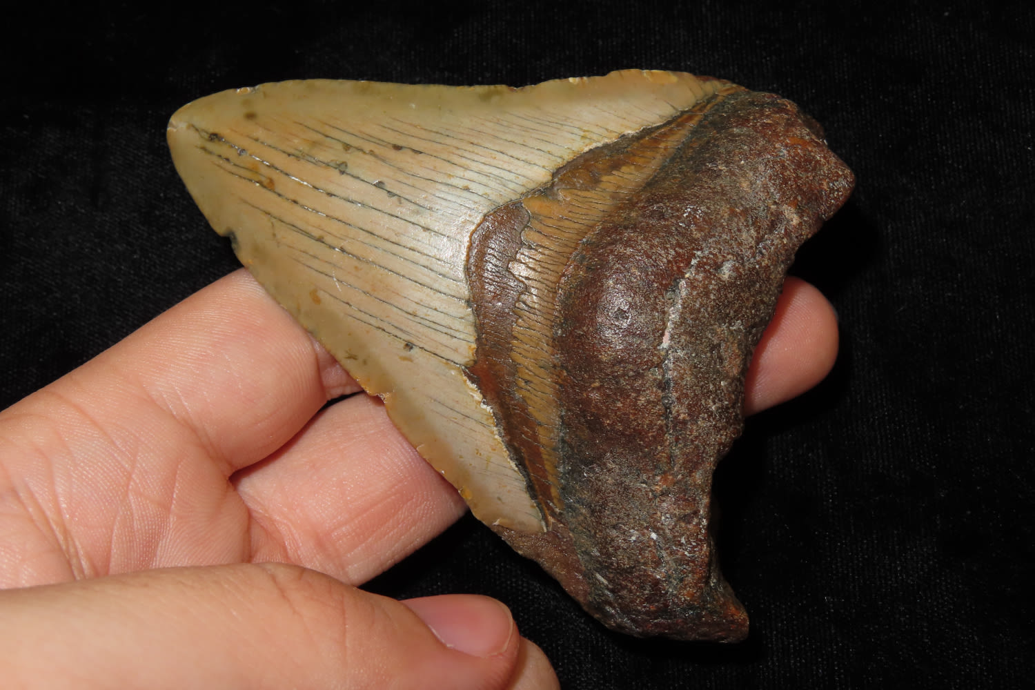 3 3/4″ MEGALODON SHARK TOOTH FOUND OFF THE COAST OF THE CAROLINAS