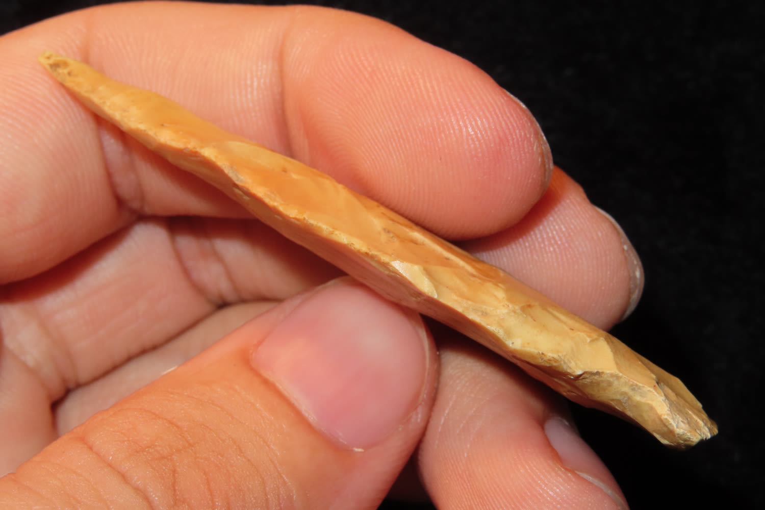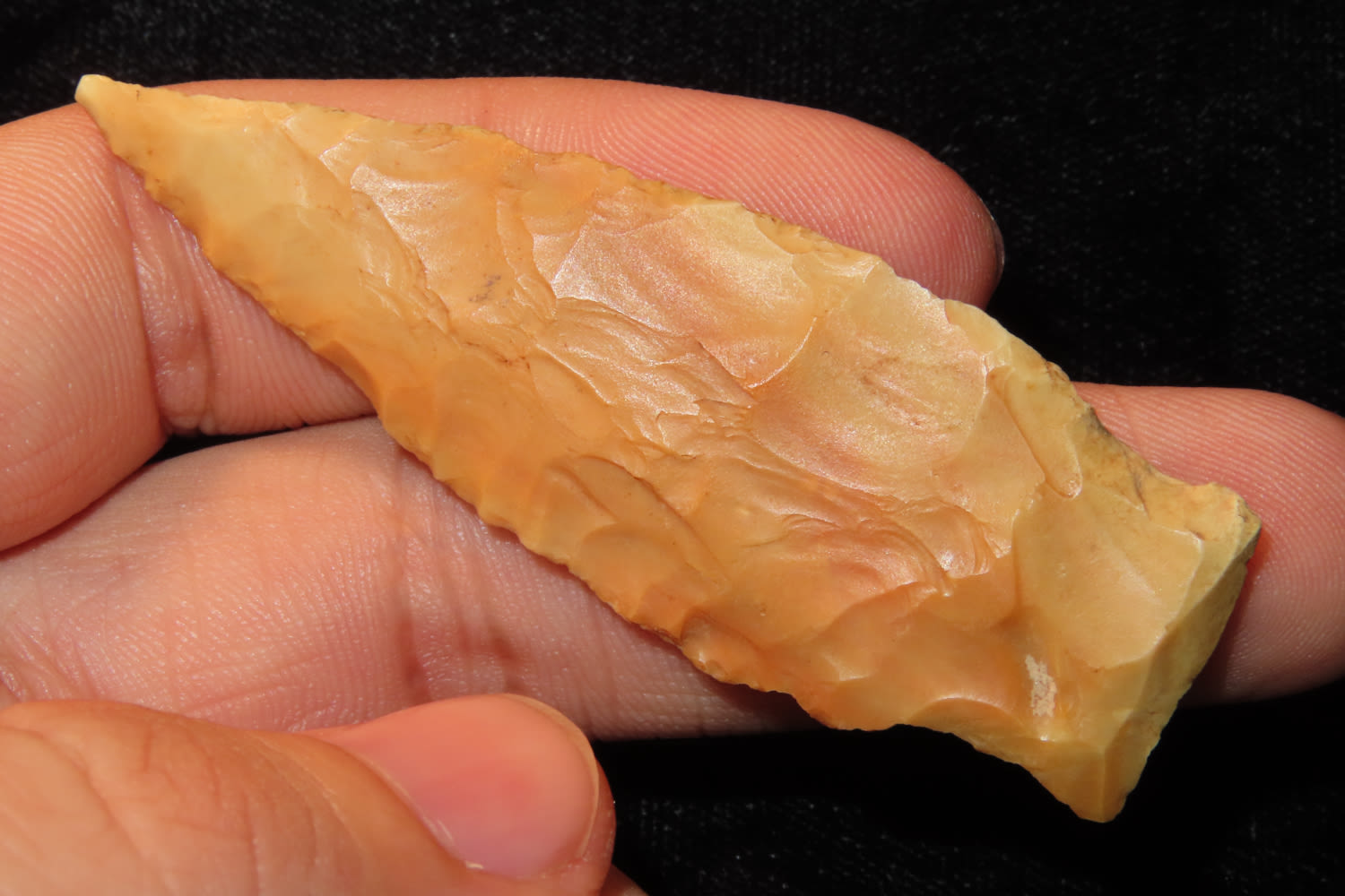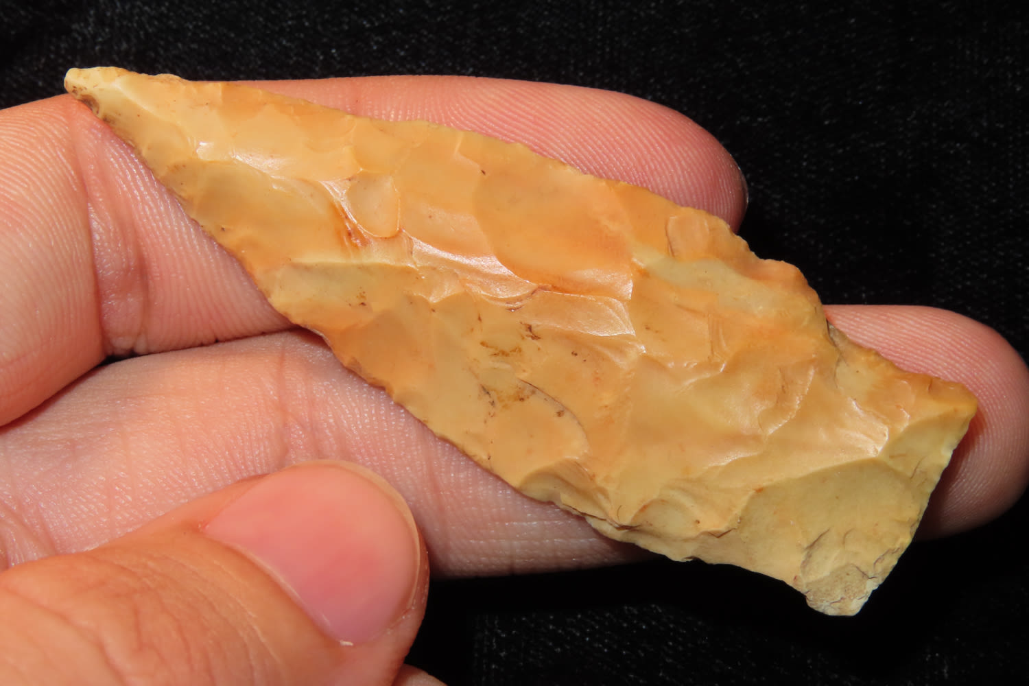 2 5/8″ VERY COLORFUL KARNAK FOUND IN LINCOLN COUNTY MISSOURI, GREAT COLOR, INDIAN ARROWHEAD, ARTIFACT
