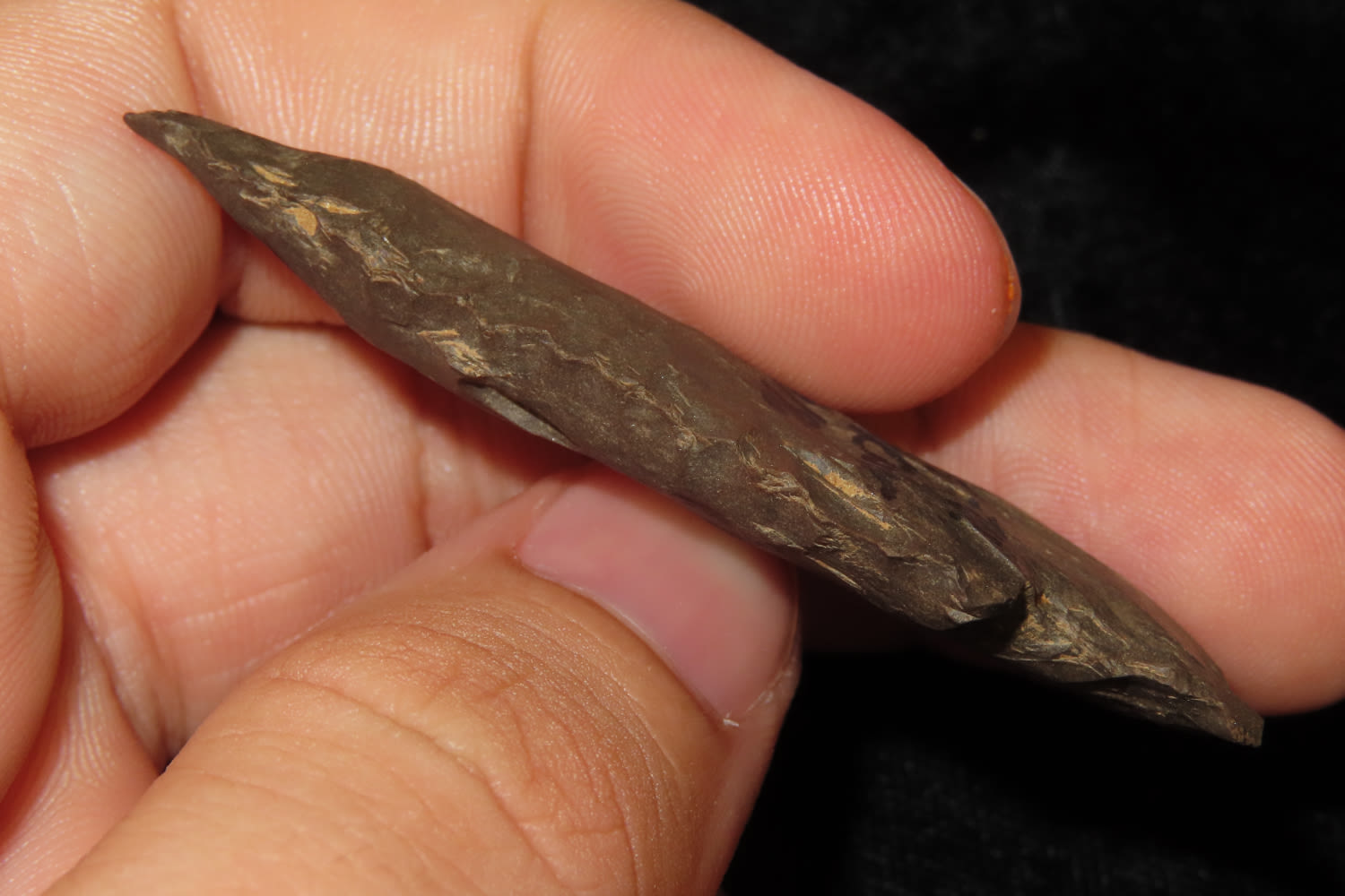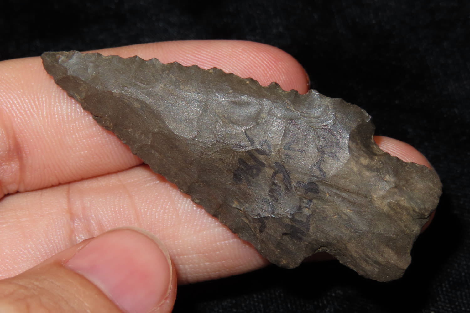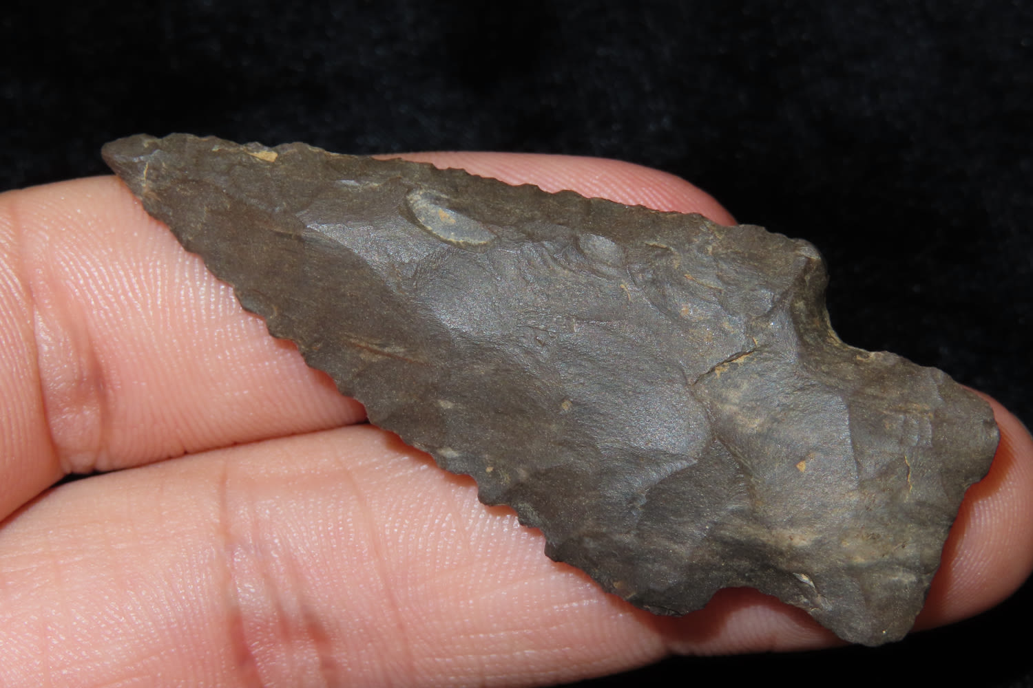 2 3/8″ SERRATED KIRK FOUND ALONG THE TENNESSEE RIVER, GREAT EXAMPLE, WELL FLAKED OUT OF DOVER