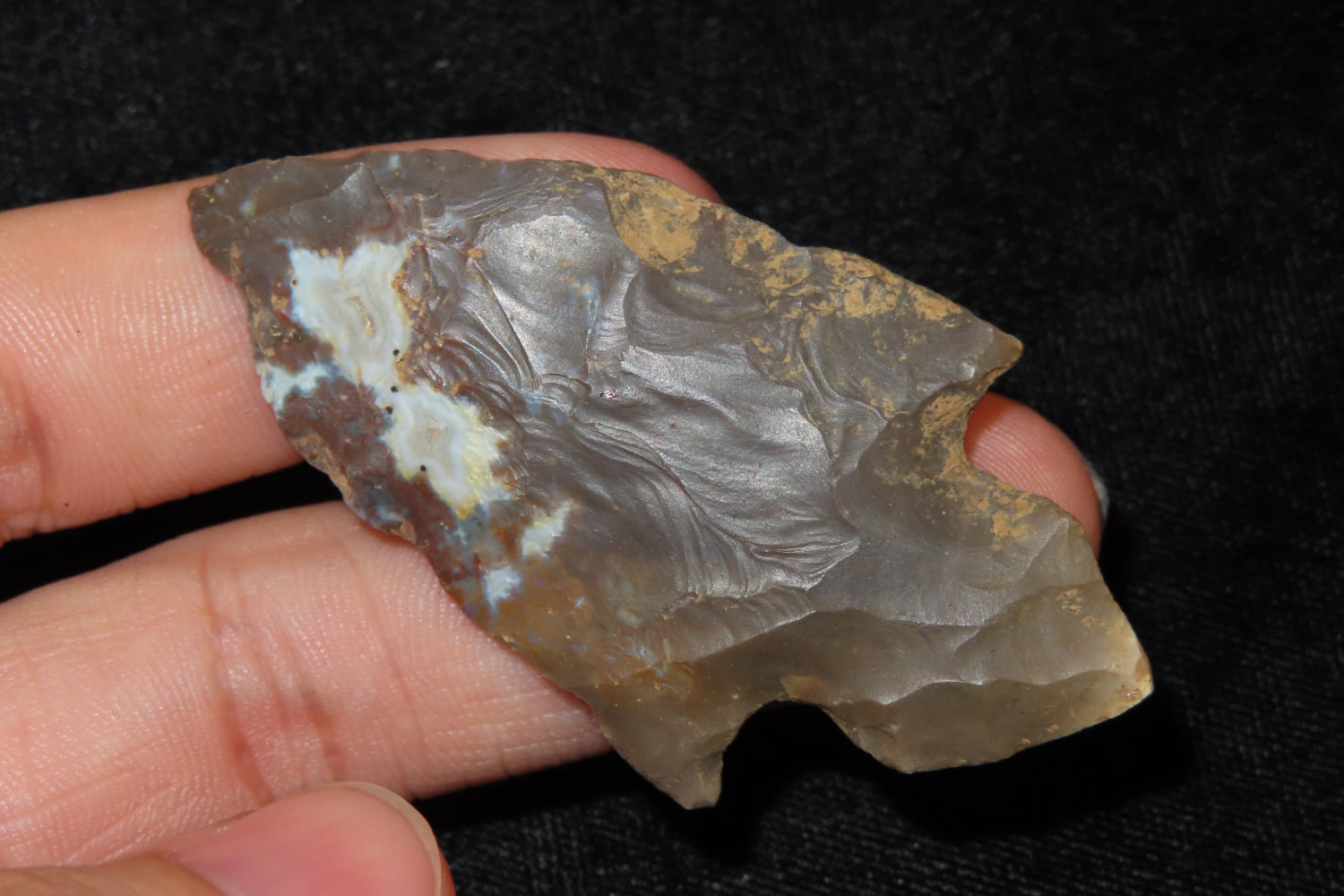 2 5/8″ TURKEYTAIL FOUND IN JEFFERSON COUNTY KENTUCKY, NICE CLASSIC EXAMPLE, INDIAN ARROWHEAD, ARTIFACT