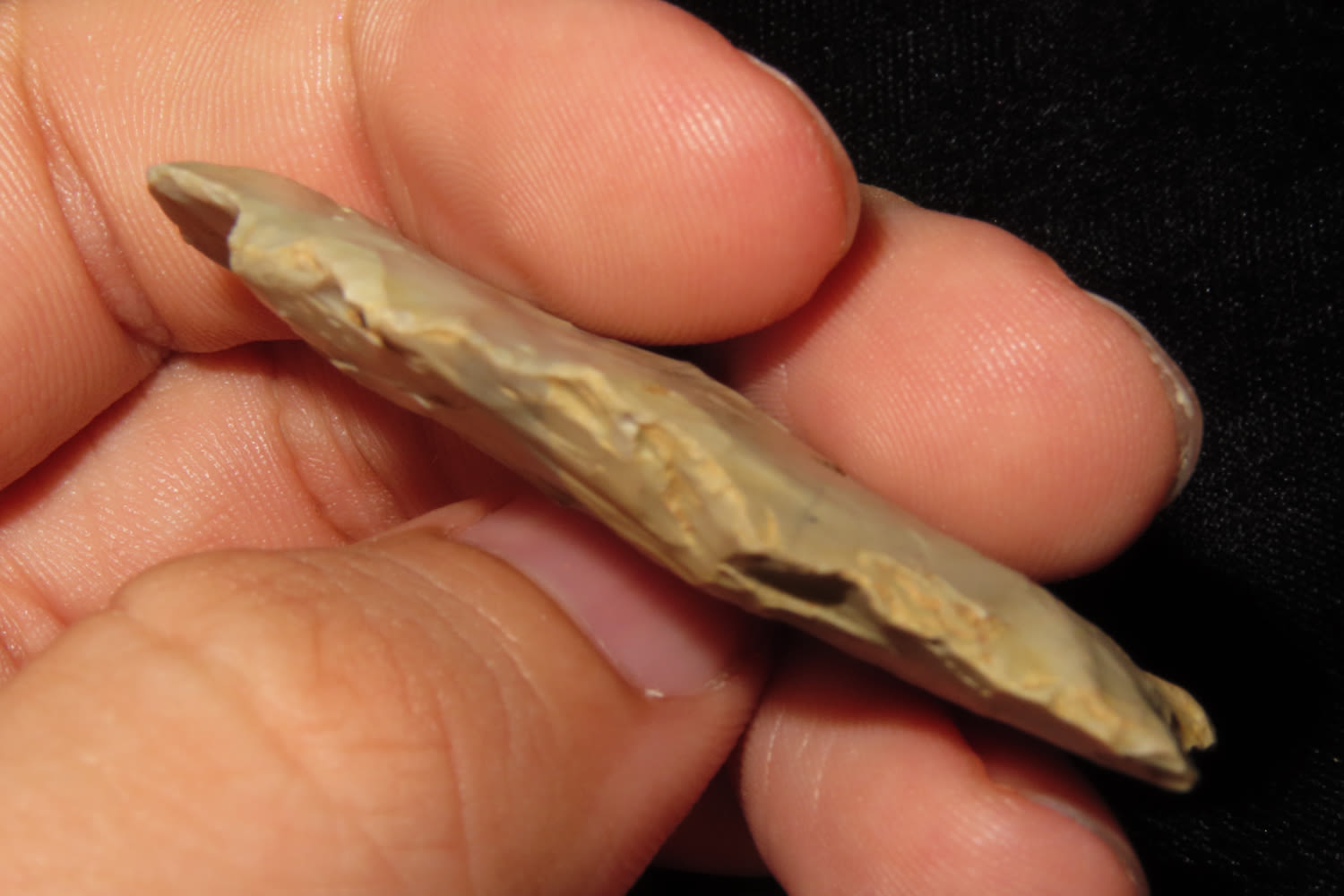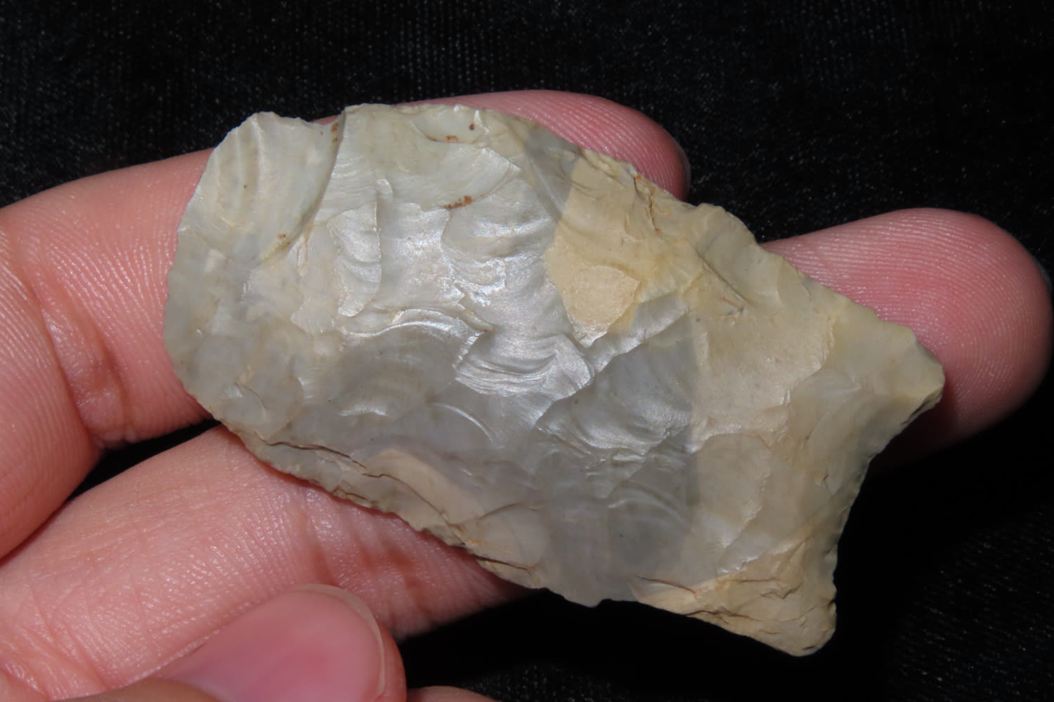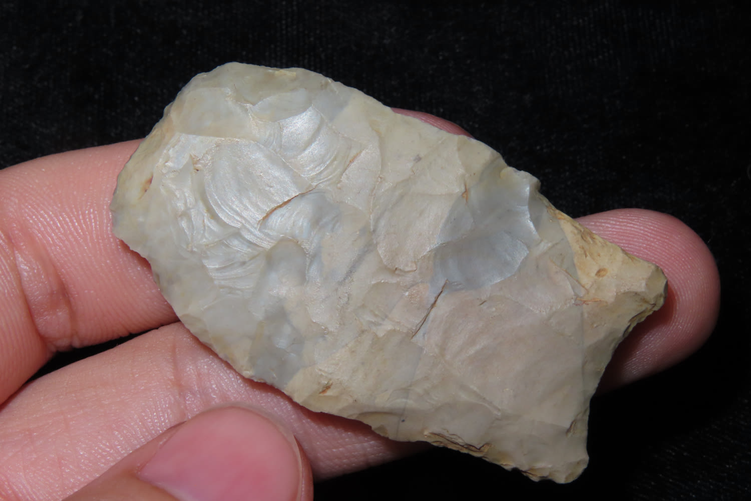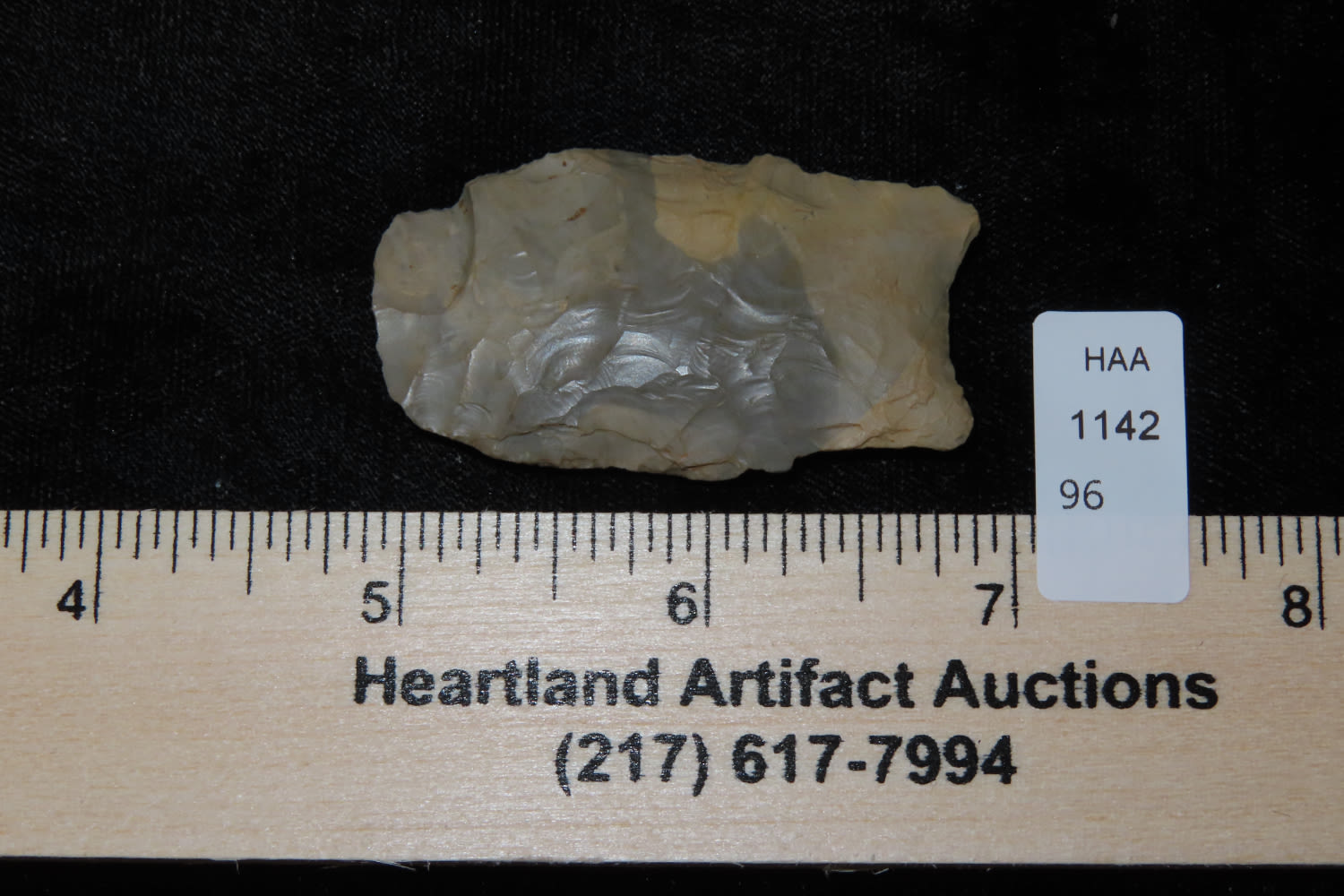 2 1/16″ FLUTED DALTON BLUNT / HAFTED SCRAPER FOUND AT THE OLIVE BRANCH SITE, ALEXANDER COUNTY ILLINOIS