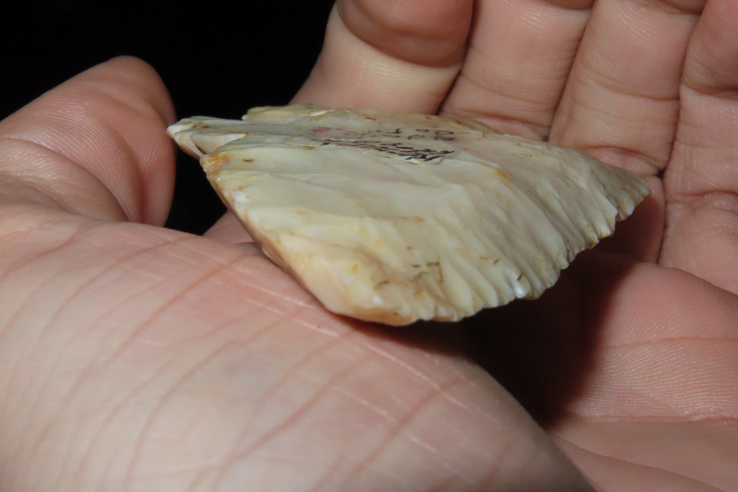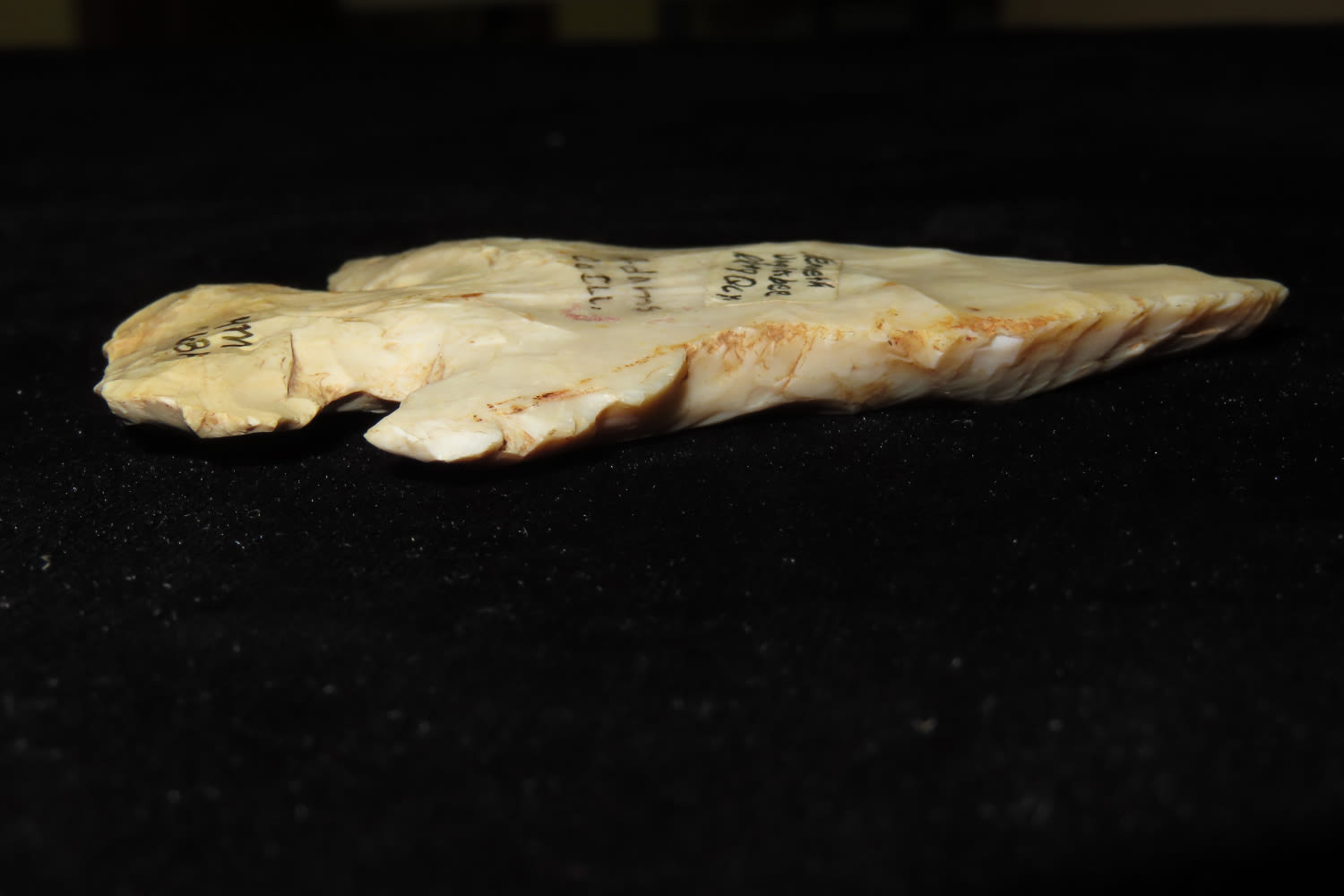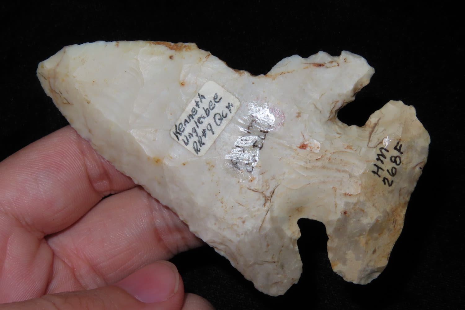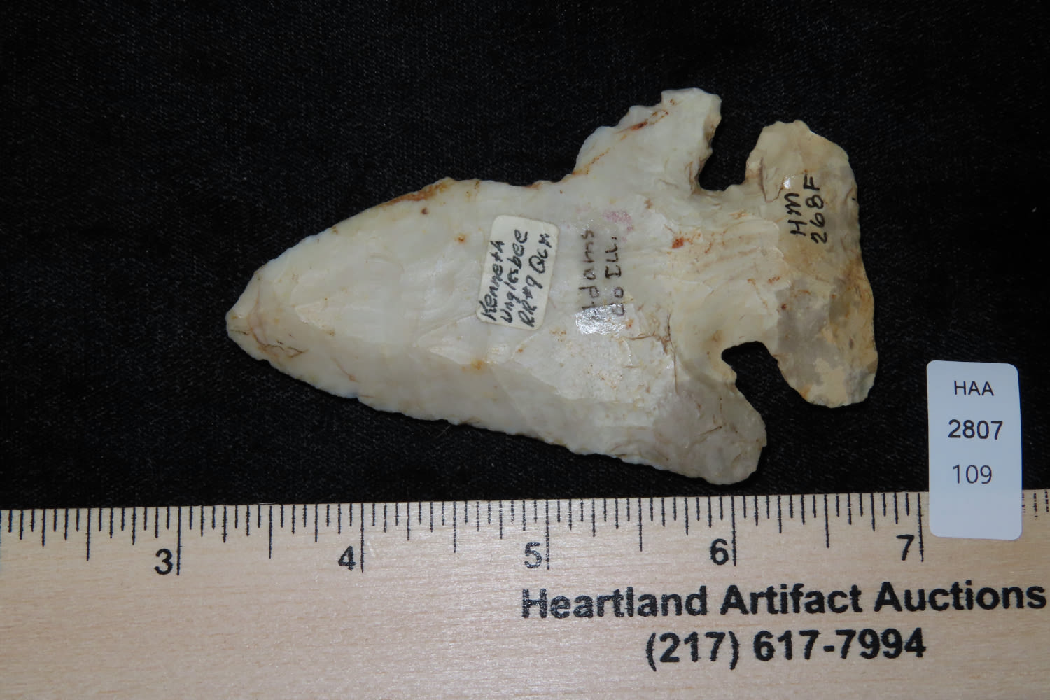 3 5/8″ Thebes found in Adams County Illinois by Kenneth Unglesbee RR9, Quincy Ex Herb Mangold Collection
