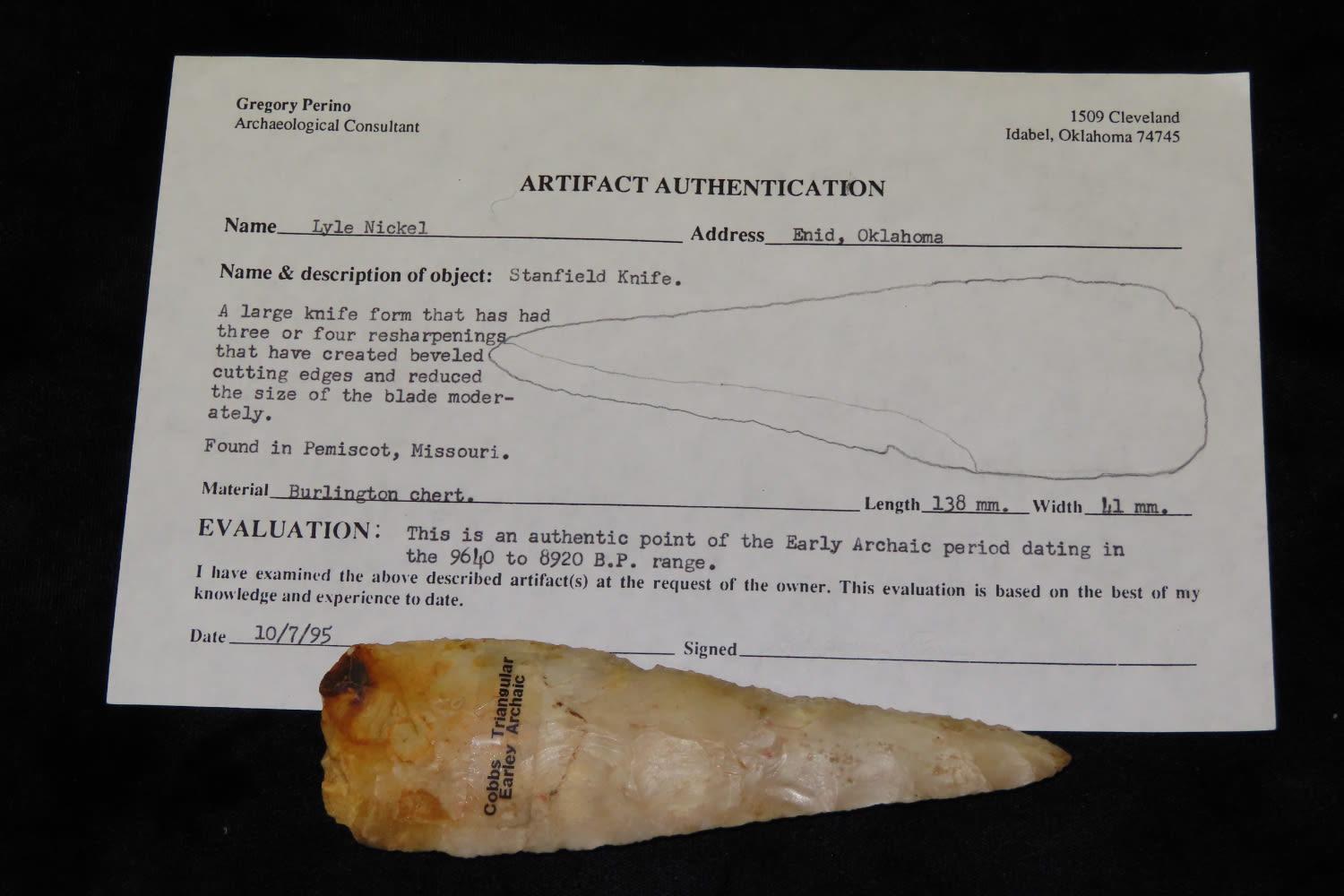 5 1/2″ Stanfield Perino COA found in Pemiscot Missouri Ex Herb Mangold Collection