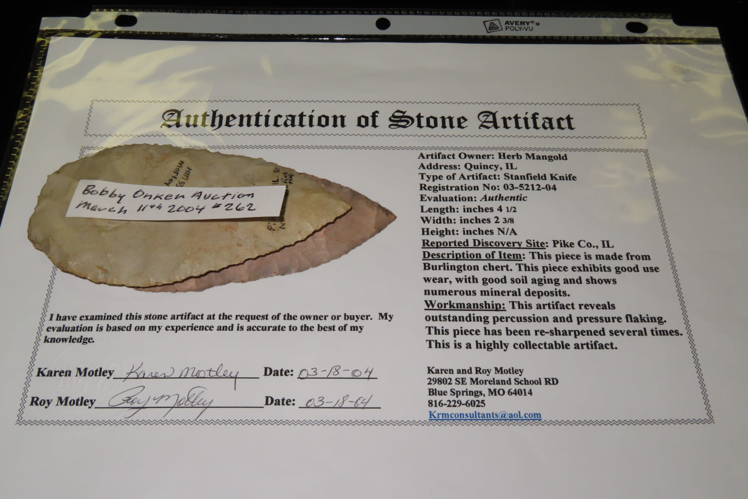 4 1/2″ Stanfield Motley COA found in Pike County Illinois Ex Herb Mangold Collection
