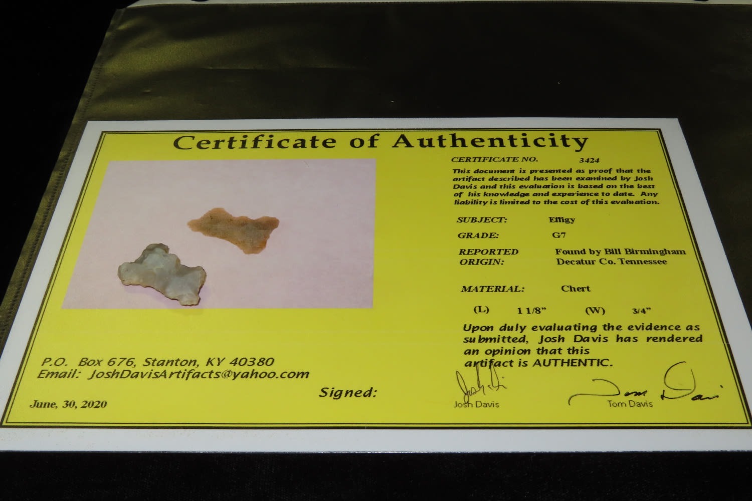 1 1/8″ Effigy David COA found in Decatur County Tennessee Charlie Cathers Collection