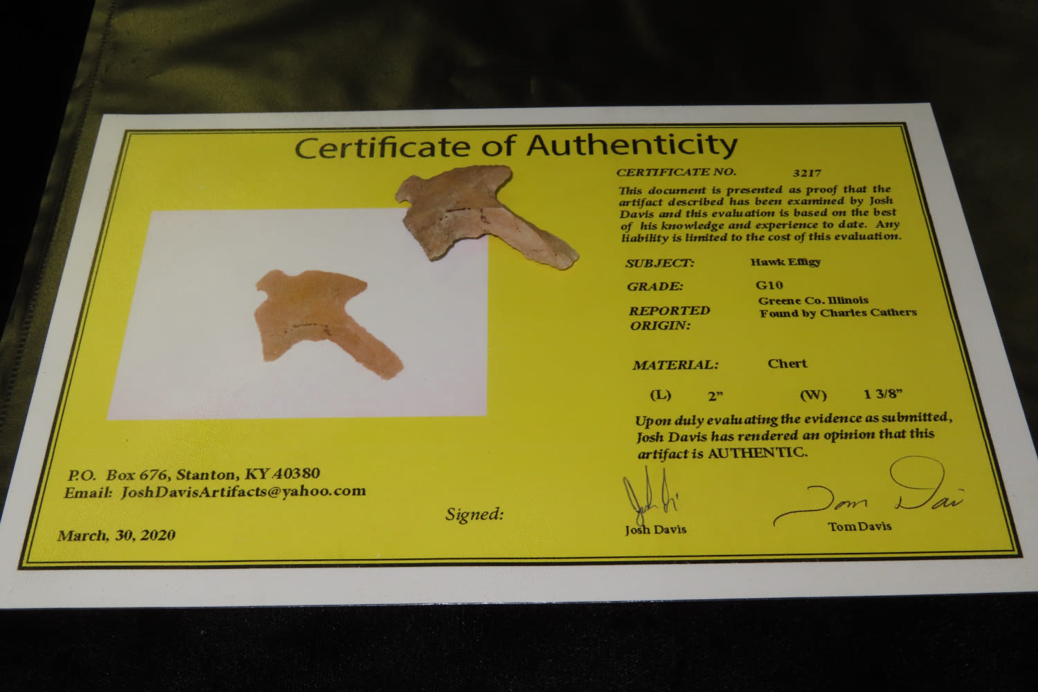 2″ Hawk Effigy Eccentric found in Green County Illinios Davis COA