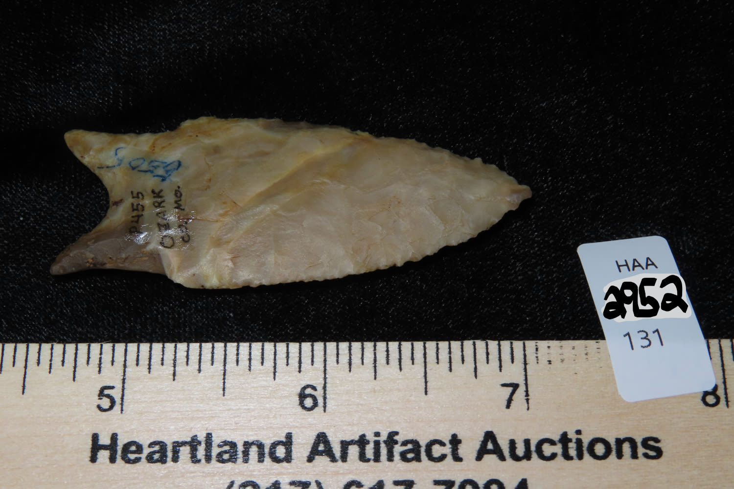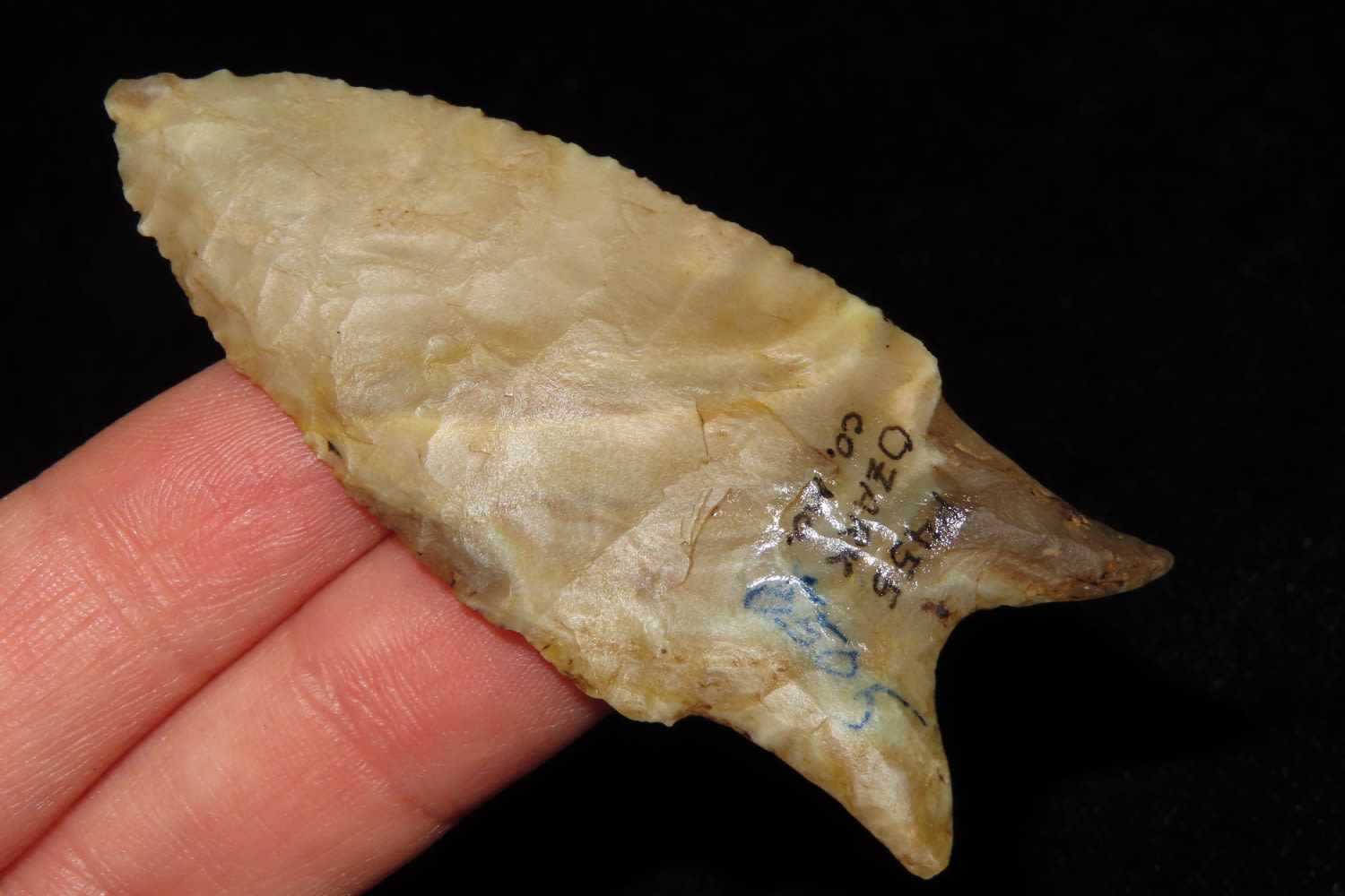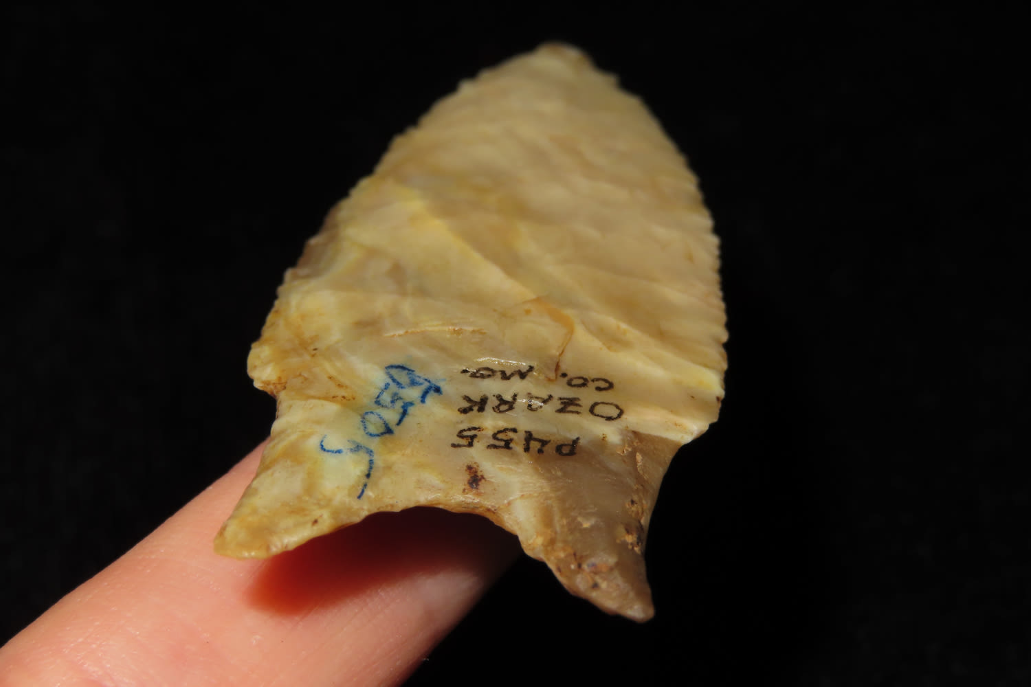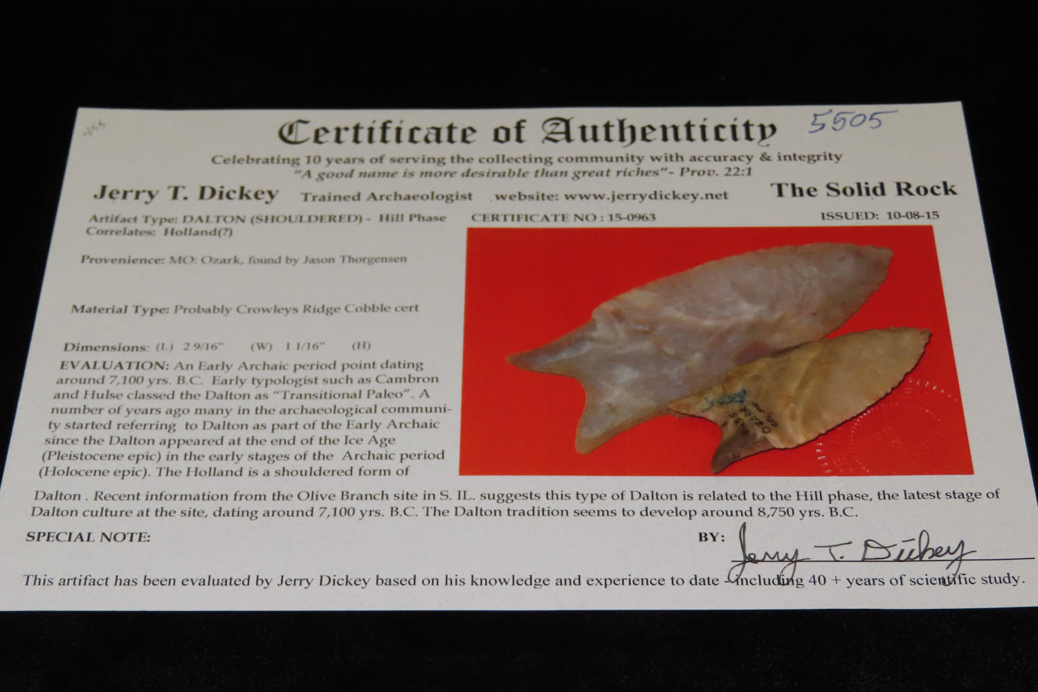 2 9/16″ Dalton Shouldered Hill Phase of Crowleys Ridge Cobbled Chert, Dickey COA, found by Jason Thorgenson in the Ozarks of Missouri Ex Daniel Boxx