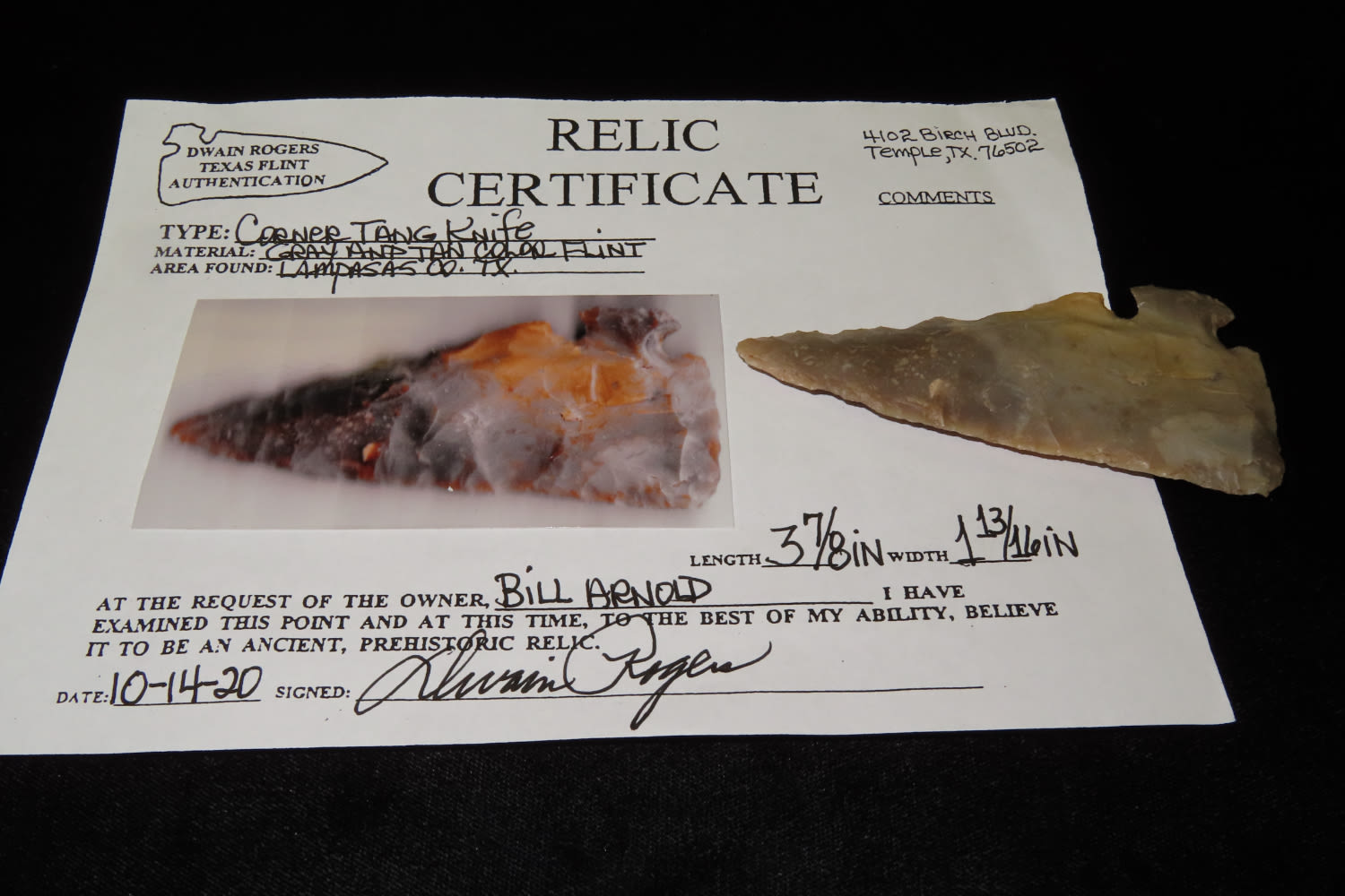 3 7/8″ Corner Tang Knife Rogers COA Found in Lampasas County TX
