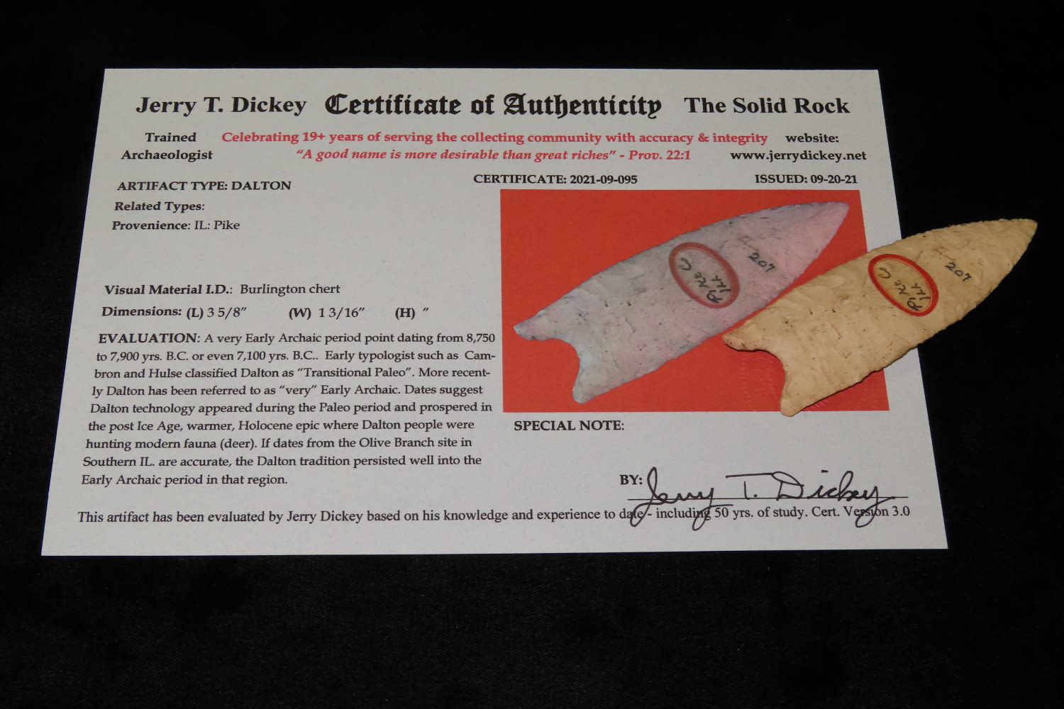 3 5/8″ Dalton Found in Pike County Illinois Dickey COA