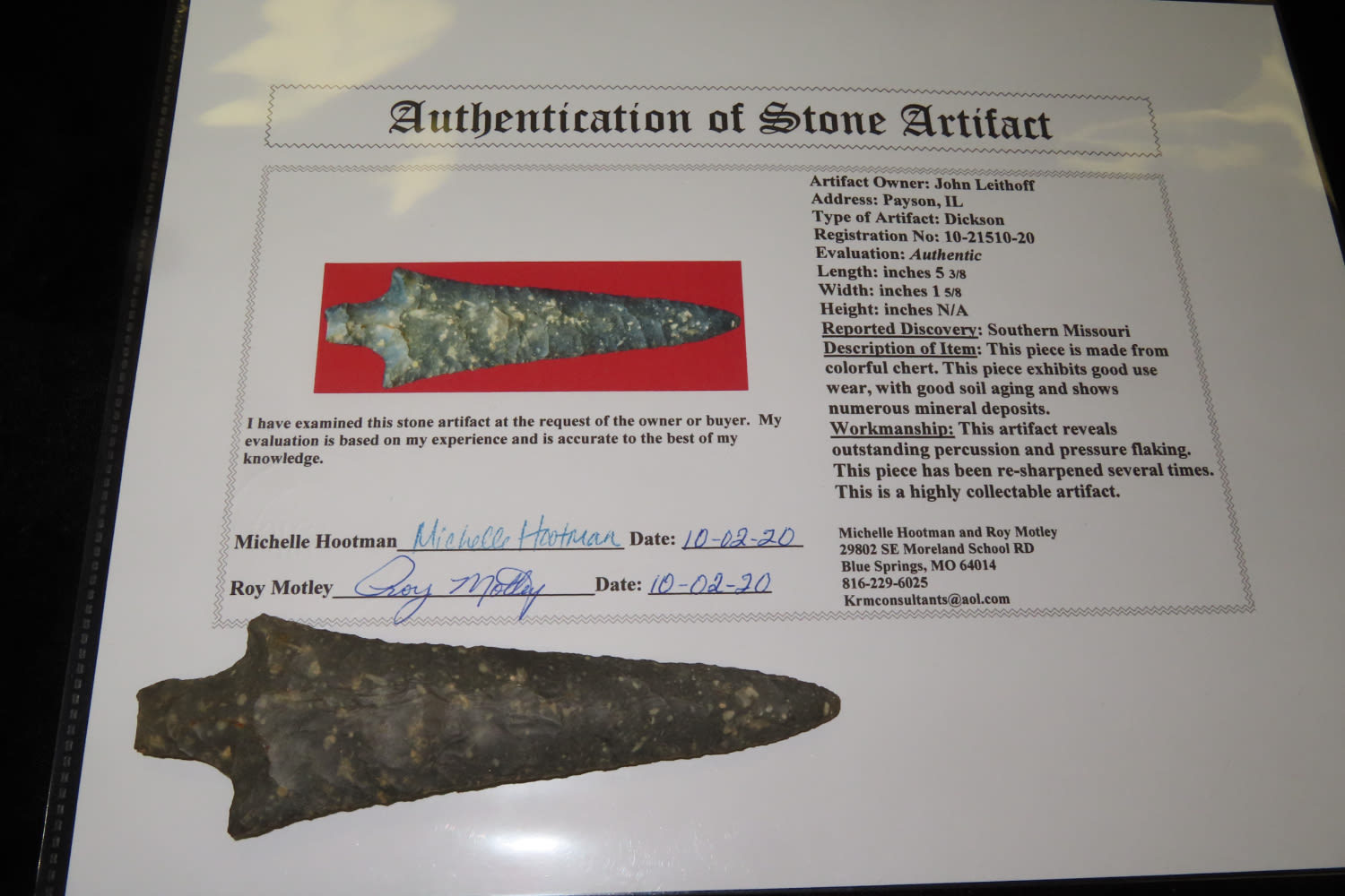 5 3/8″ Dixon Motley COA found in Southern Missouri