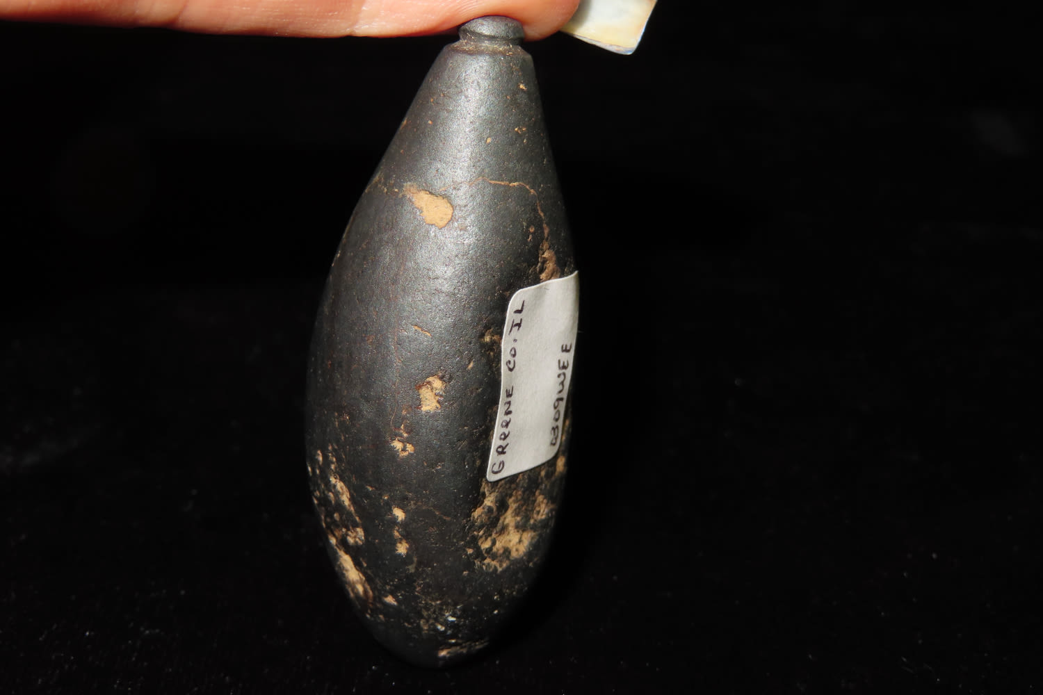 2 5/8″ Hematite Plummet found in Green County Illinois Ex Dennis Derosear