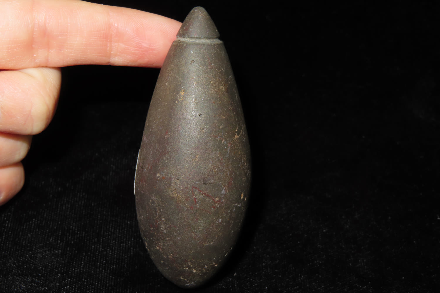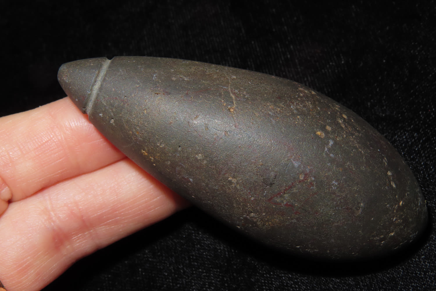 3 7/8″ Snyders Plummet Hematite found by Chuck Smith in Green County Illinois ex Dennis Derosear
