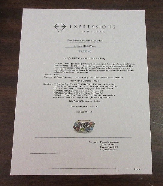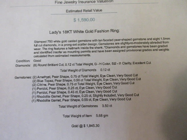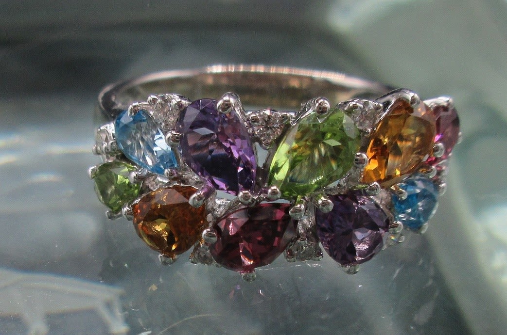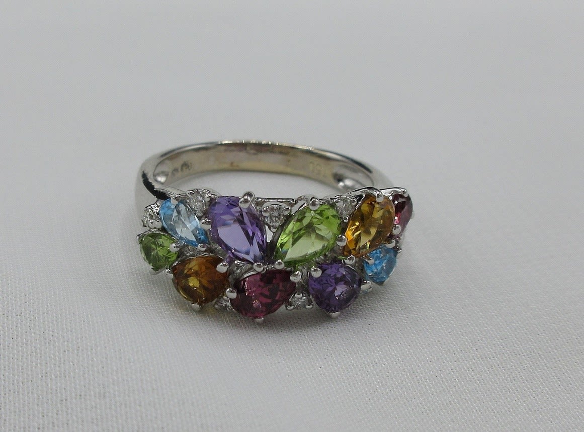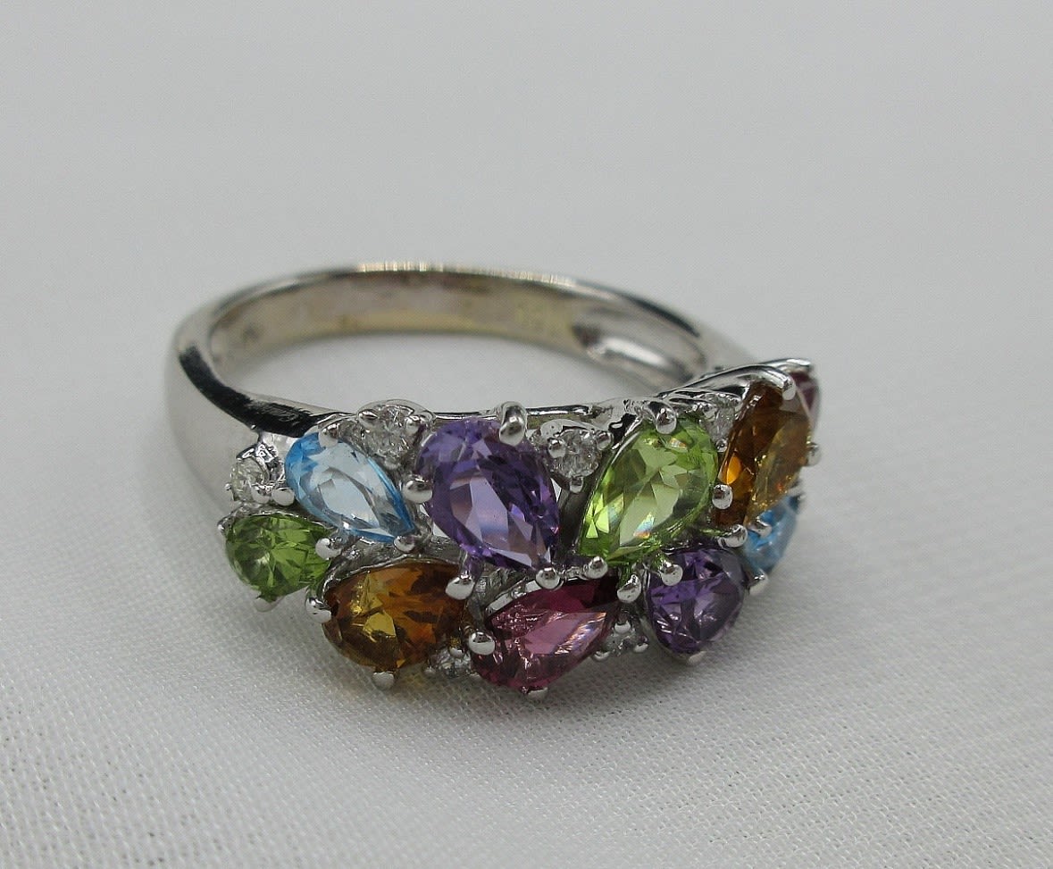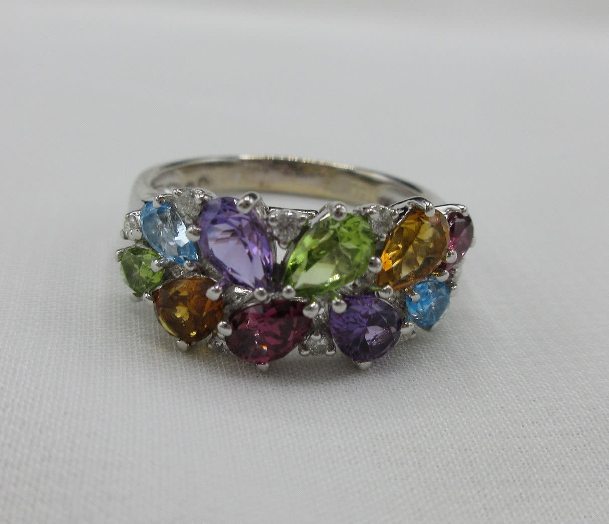 topaz, citrine, peridot, rhodolite garnet. With certified appraisal. Size 9.