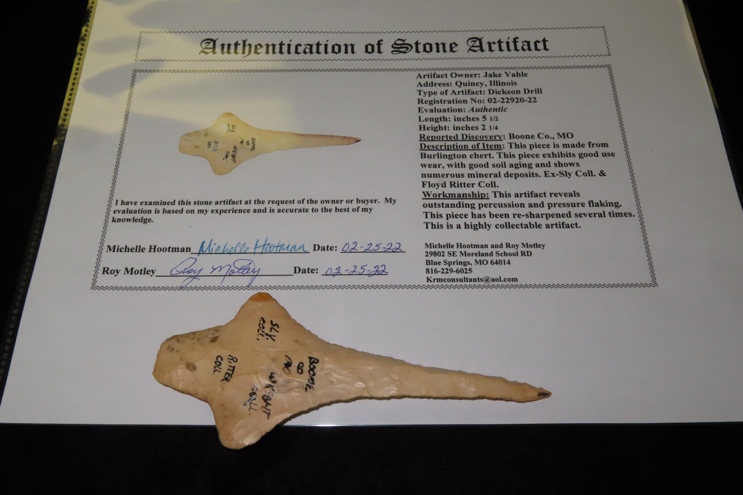 5 1;/2″ Dixon Drill found in Boone County Missouri Nicely Beveled Nice Size Motley COA