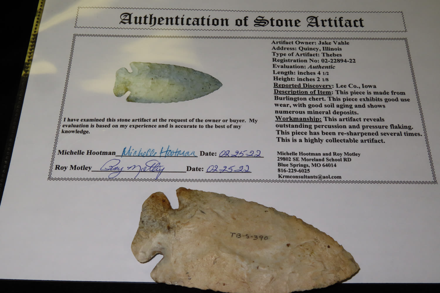 4 1/2″ Thebes found in Lee County Iowa Motley COA