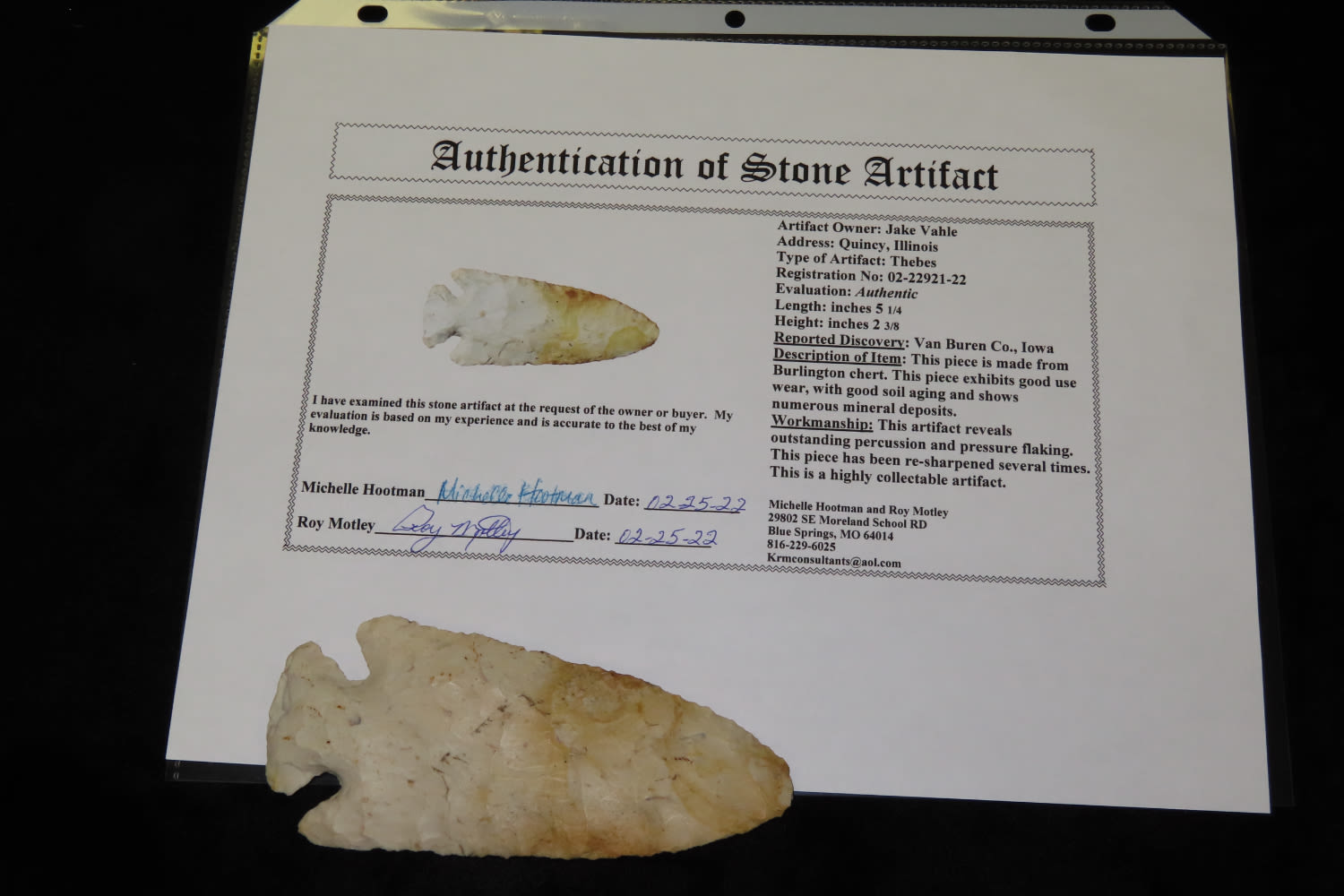 5 1/4″ Thebes Motley COA found in Van B uren County Iowa ex Jim Millard Collection