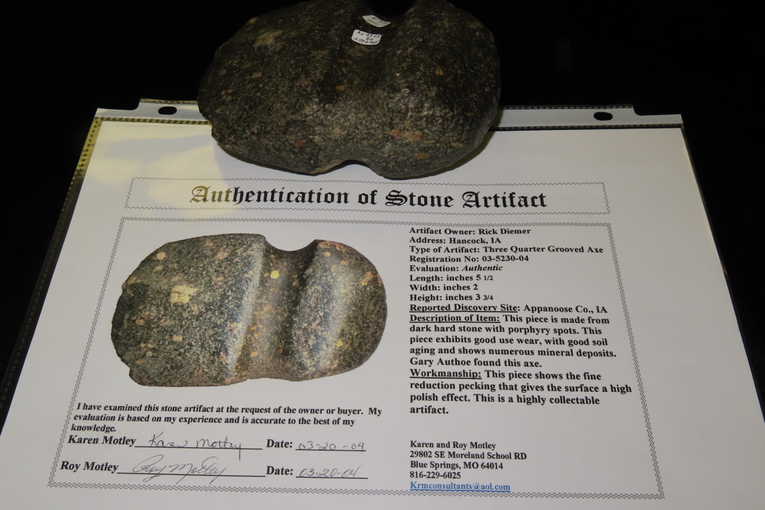 5 1/2″ 3/4 Grooved Axe Motley COA Appanoose County Iowa