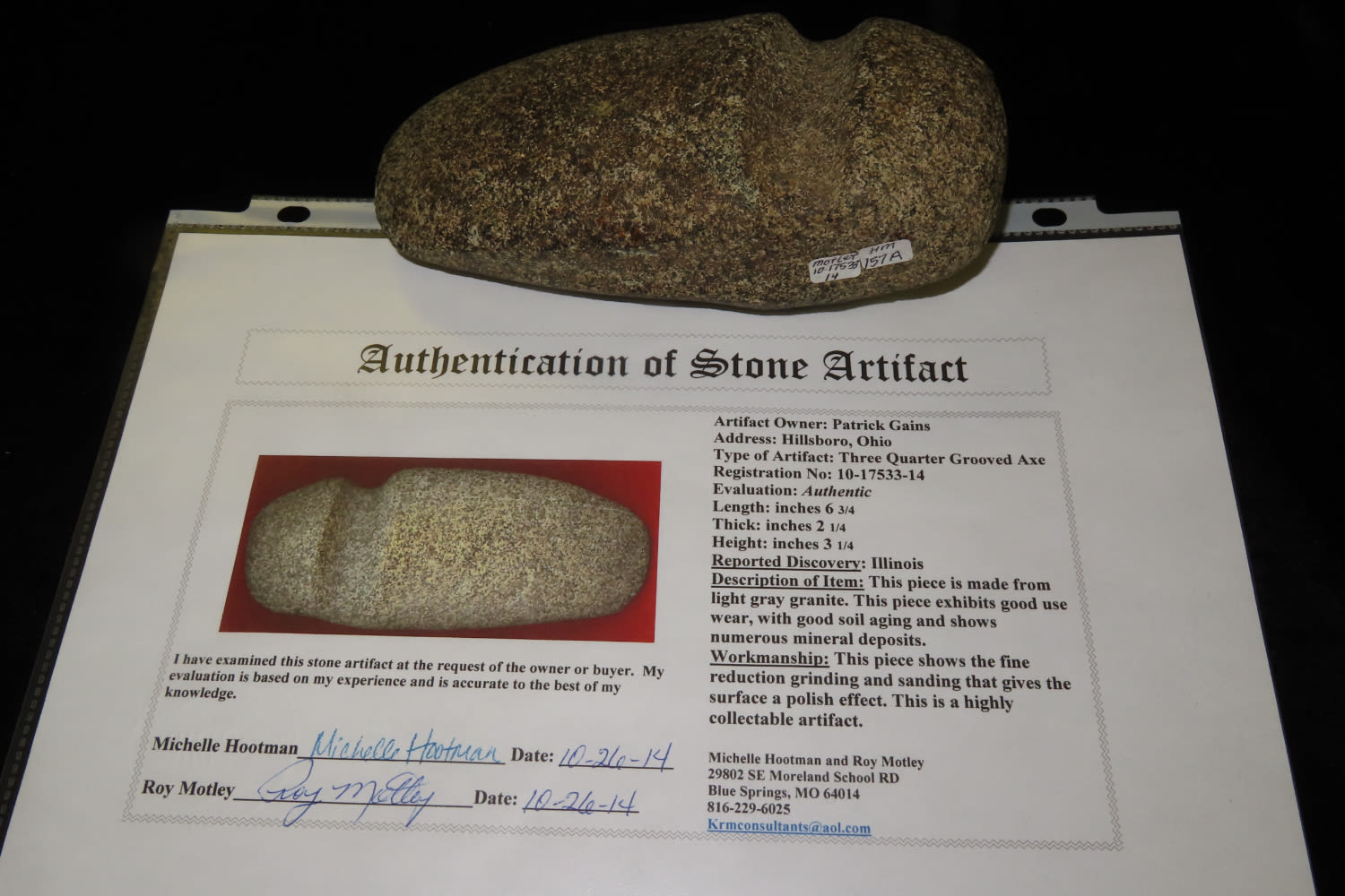 6 3/4″ 3/4 Grrove Axe Motley COA Nice Color found in Illinois