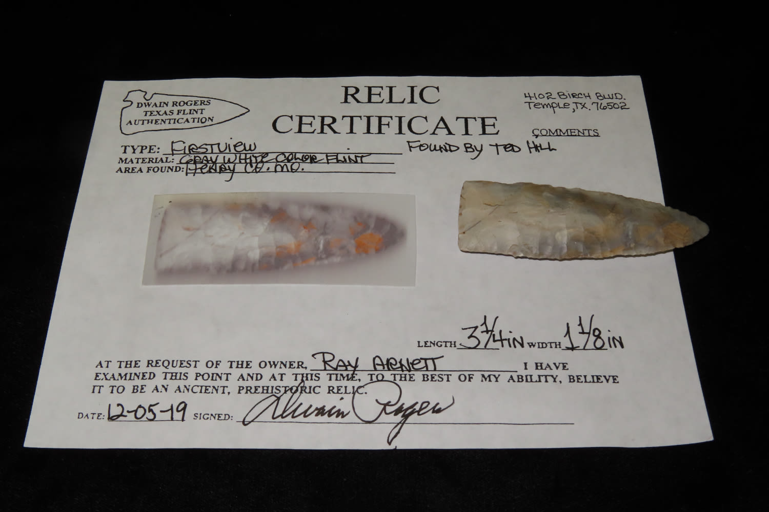 3 1/4″ First-View Cody Complex found in Henry County Missouri Rogers COA found by Ted Hill Very Well Made nice median ridge