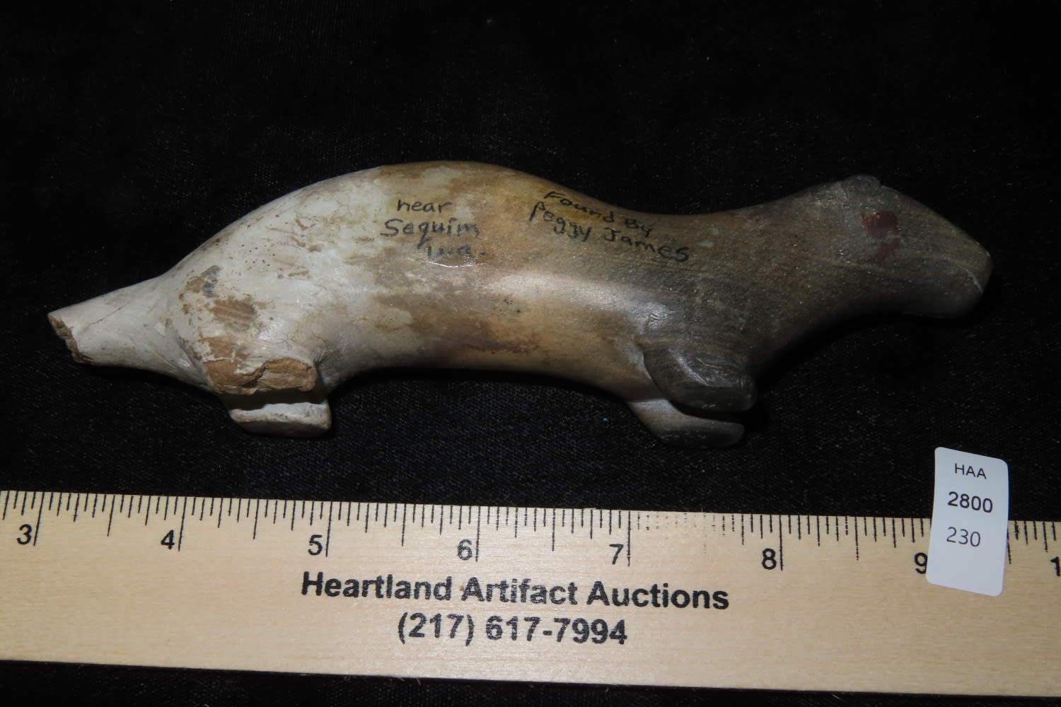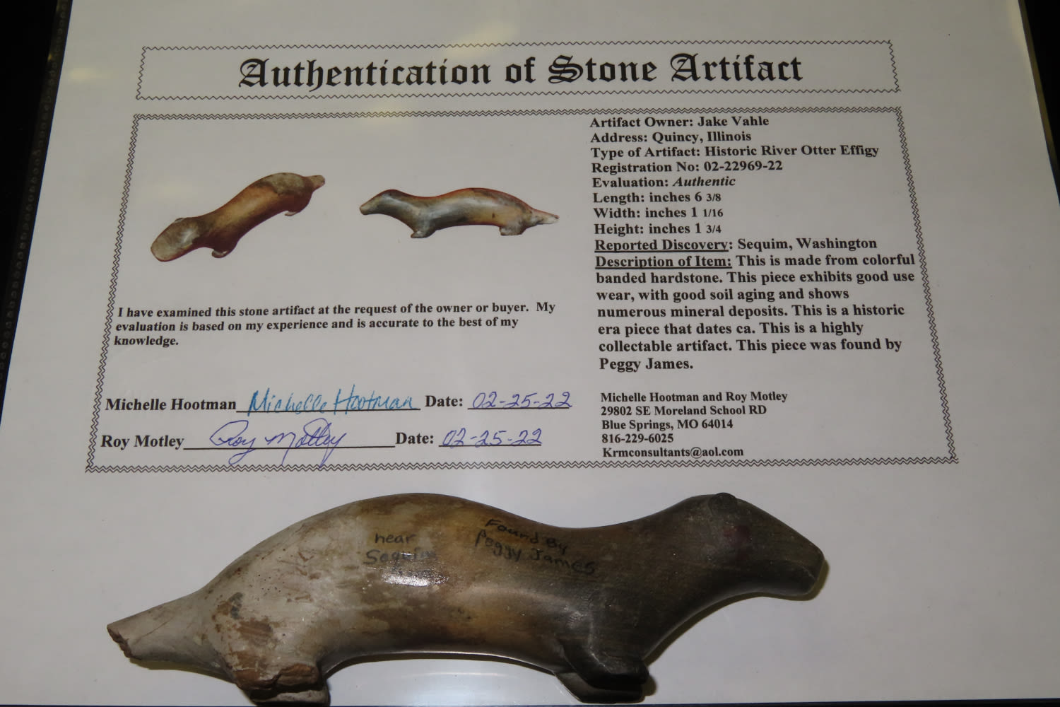 6 3/8″ Historic River Otter Effigy Motley COA Found by Peggy Janes in Sequin County Washington