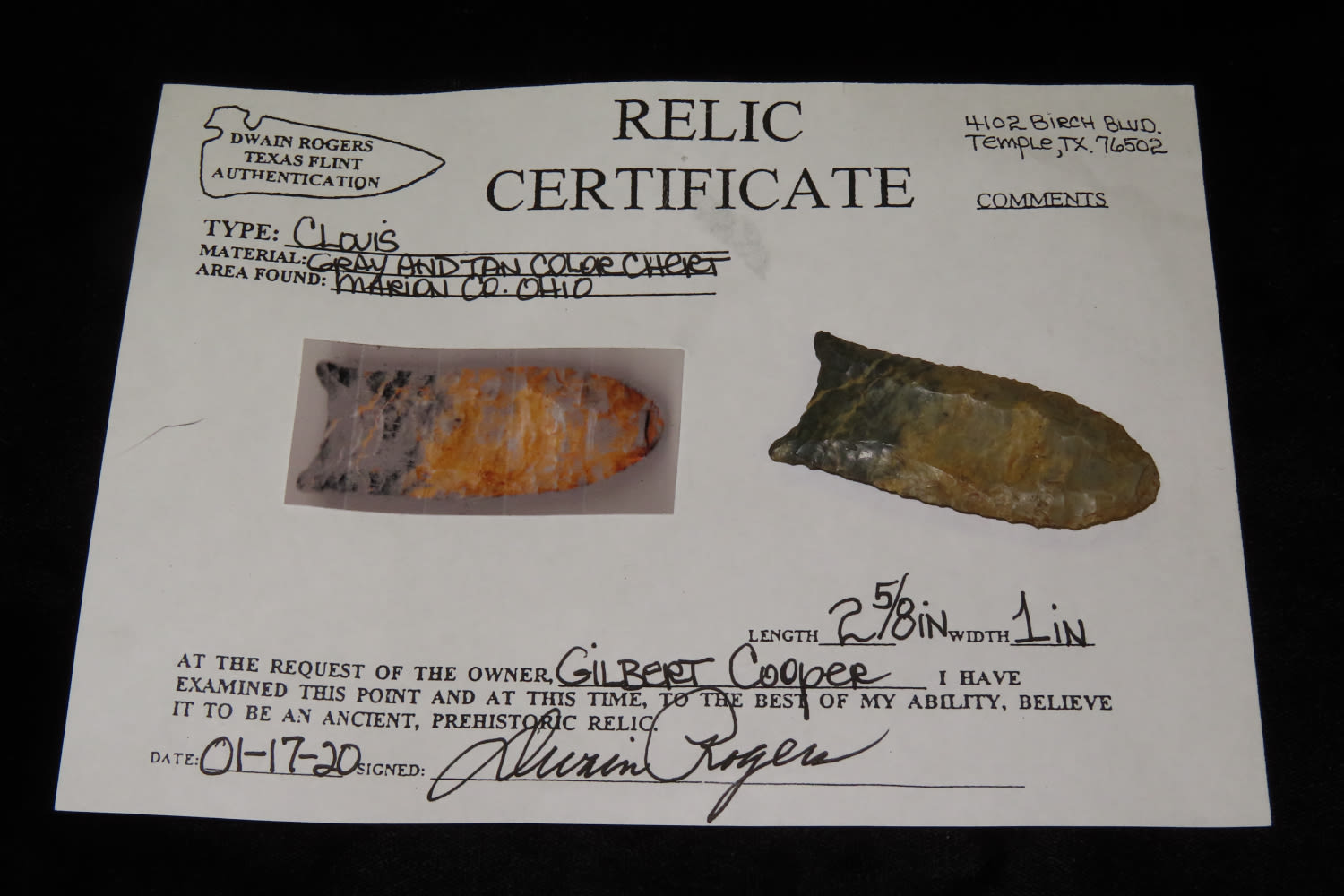 2 1/2″ Fluted Clovis Rogers COA found in Marion County Ohio ex Duane Schneider