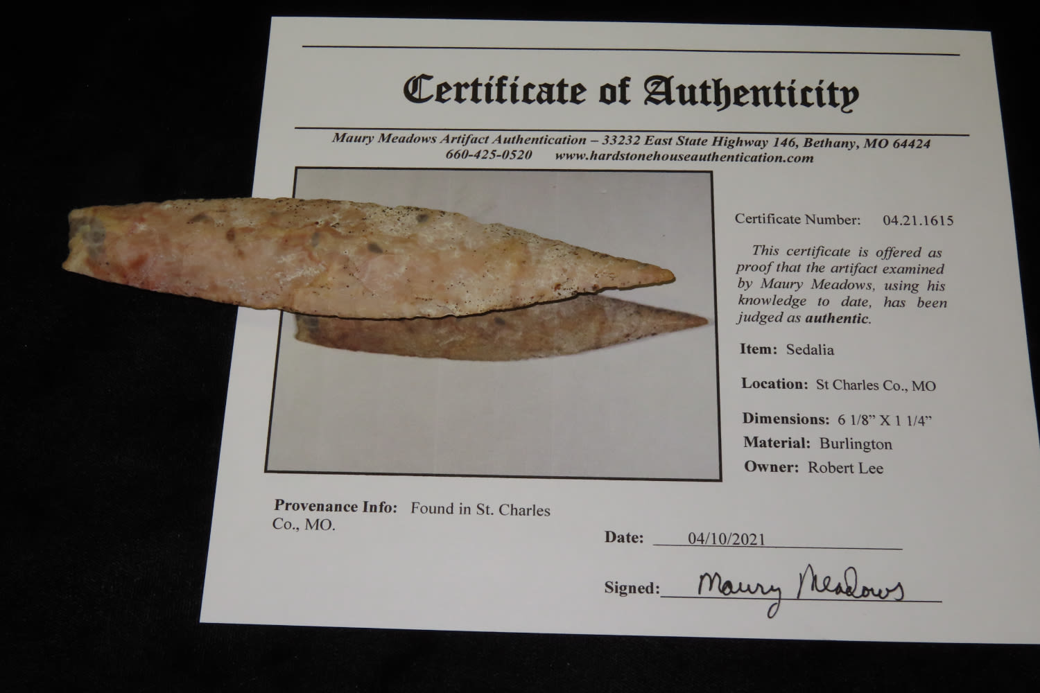 Amazing 6 1/8″ Sedalia, Meadows COA, Great Color, St Charles CO Missouri,