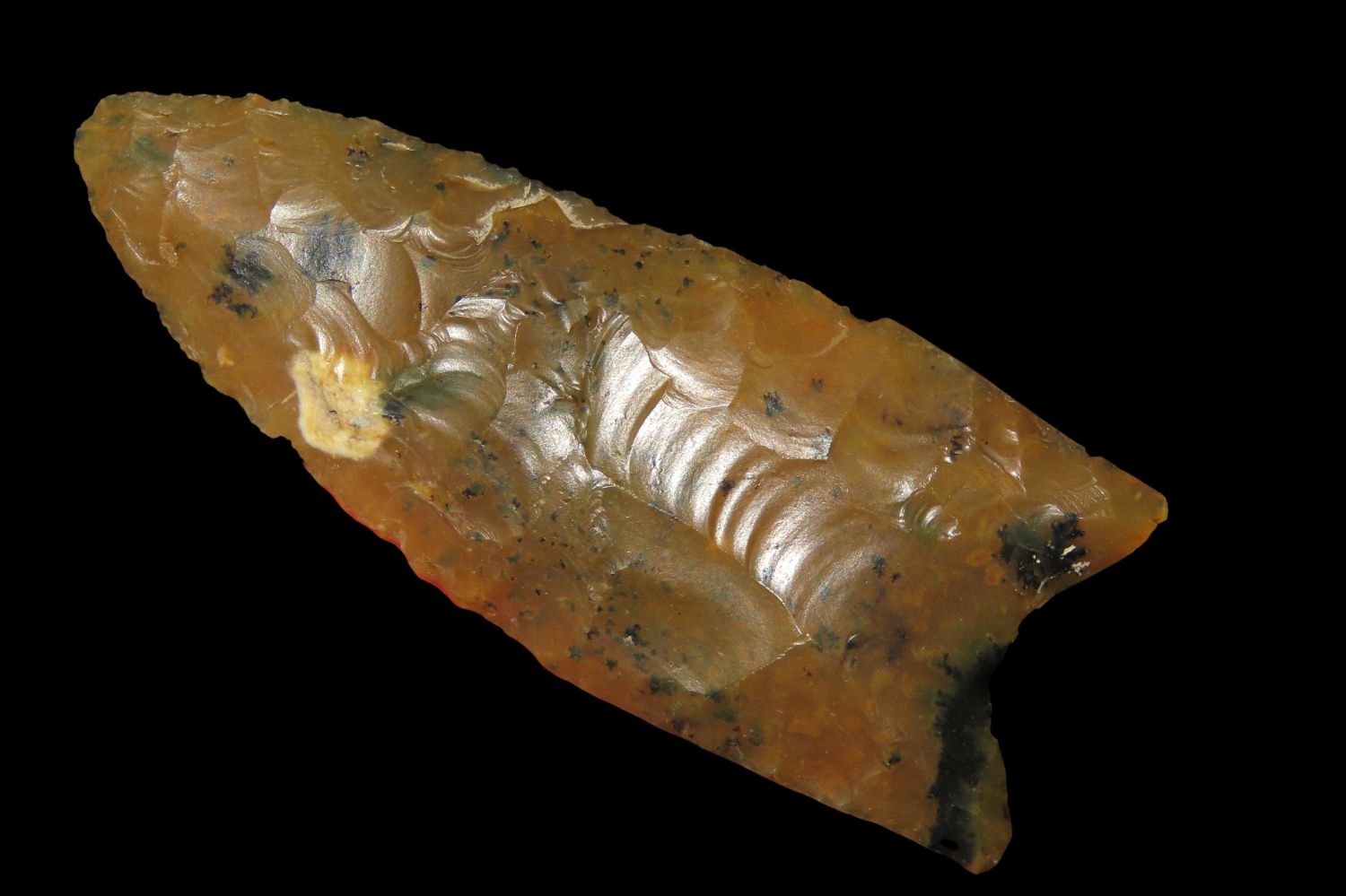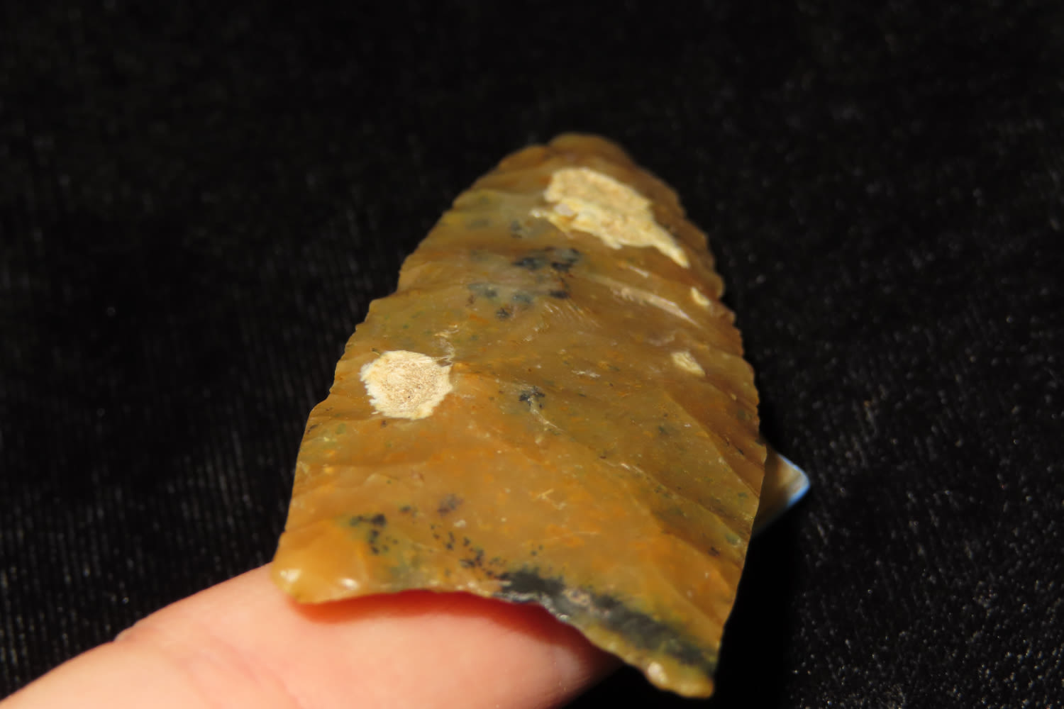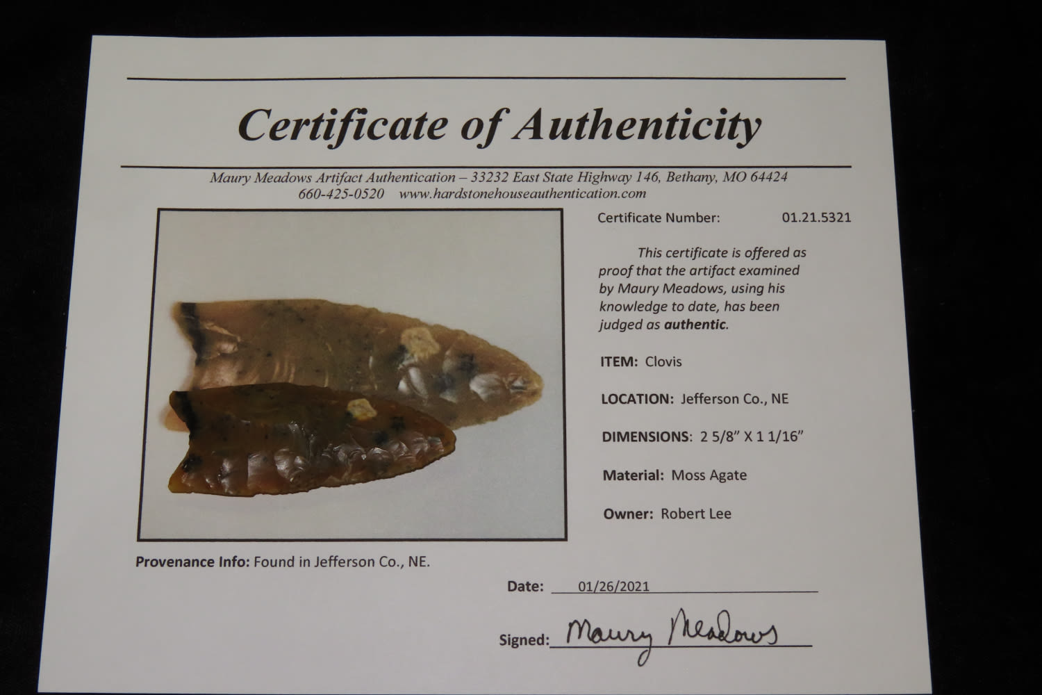 2 5/8″ Moss Agate Fluted Clovis, Meadows COA, Jefferson CO NE