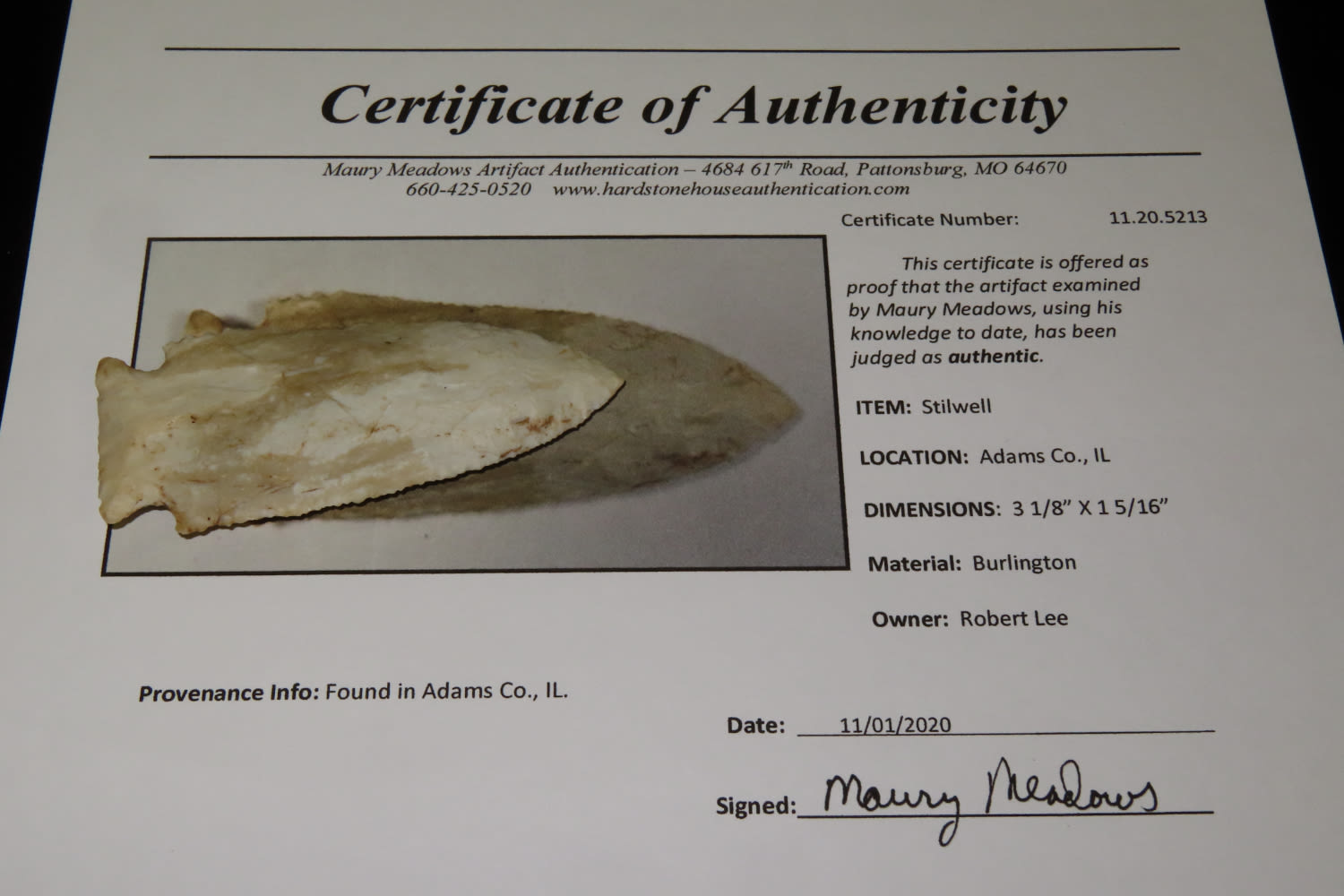 3 1/8″ Stillwell, Meadows COA, Adams CO IL