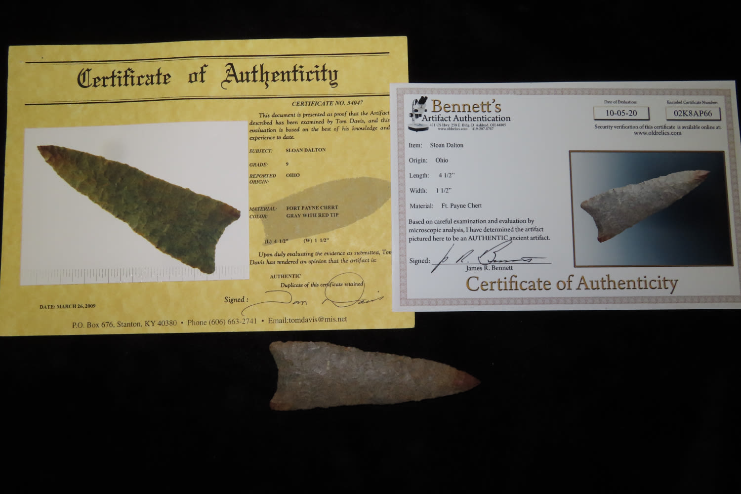 4 1/2″ Sloan Dalton, Very Fine, Bennett / Davis COA, found in Ohio