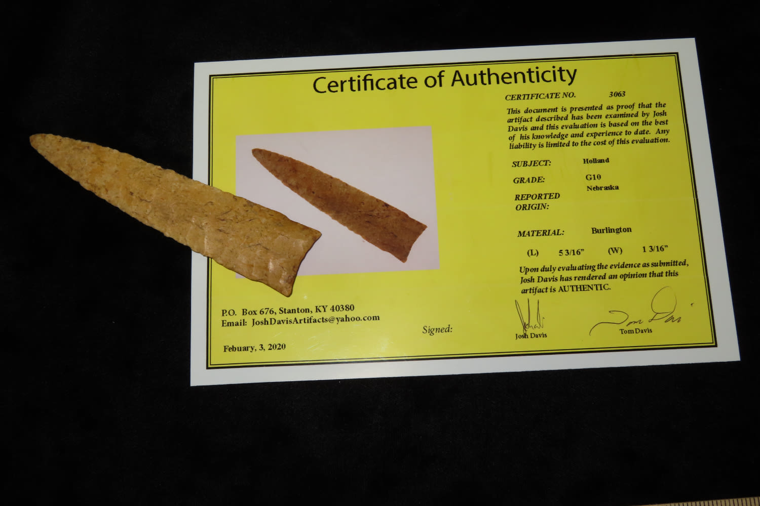 5 3/16″ Holland Dalton, Davis COA, Found in Nebraska Ex. Joe Kinker Collection