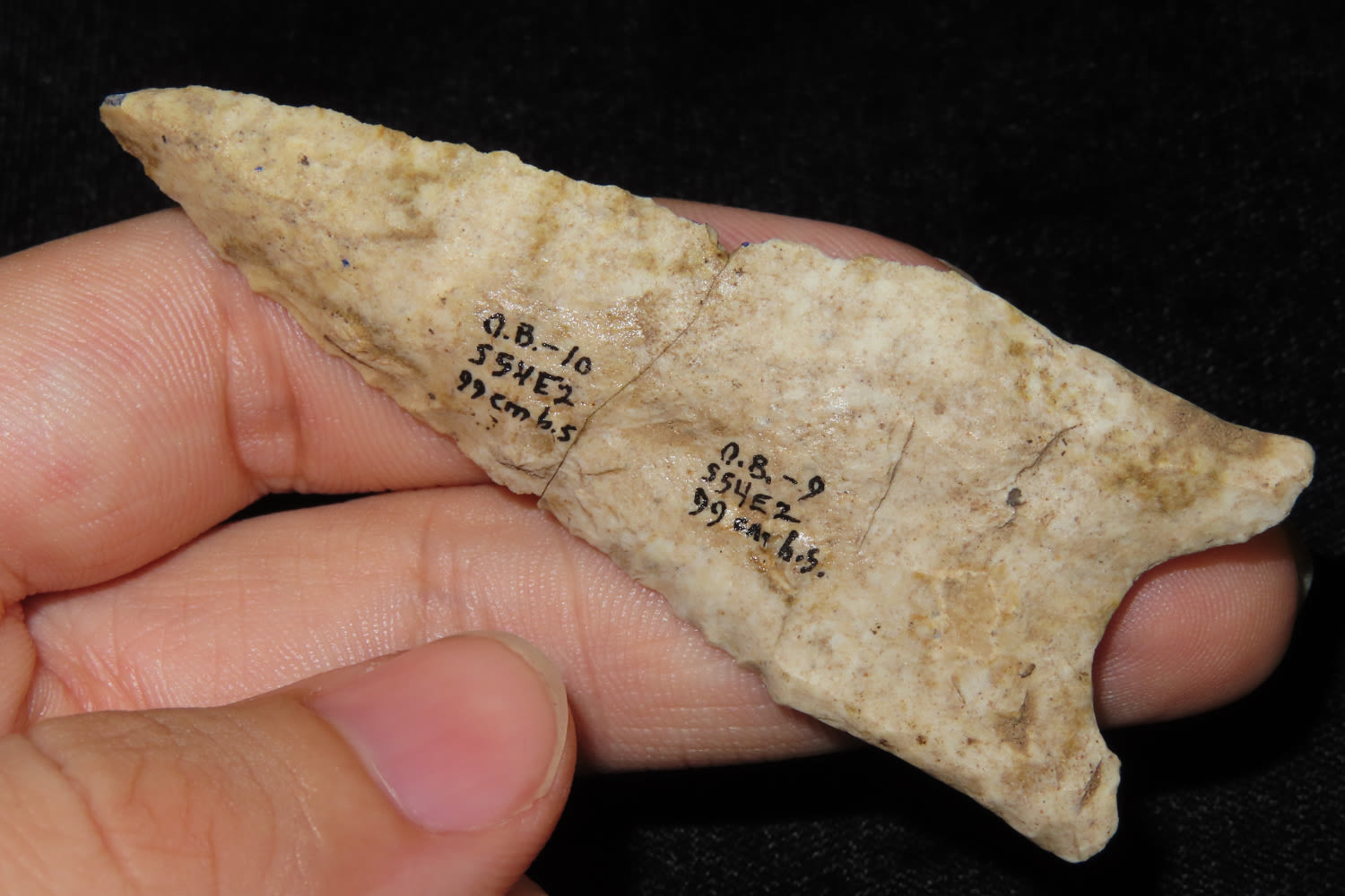 3″ Dalton Broken and Glued at the mid section Olive Branch Site, Alexander County, Illinois Dug by Dr. Michael Gramley