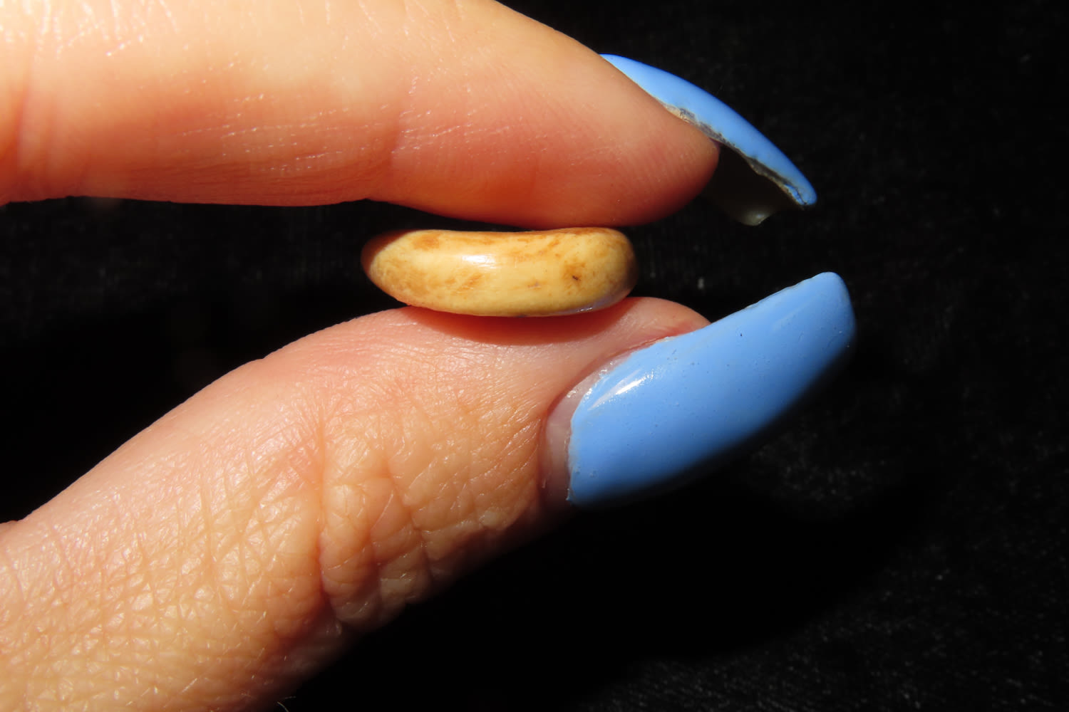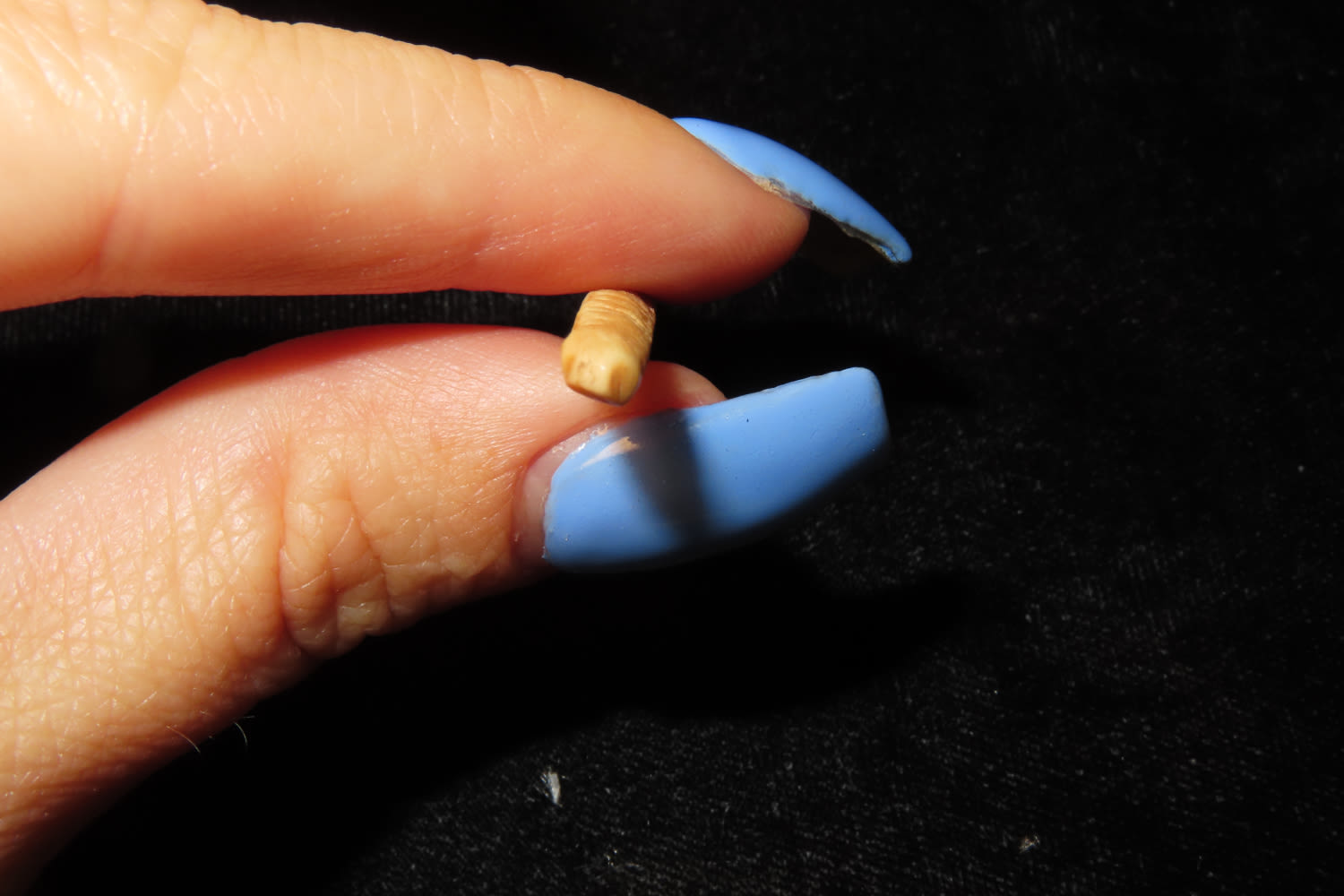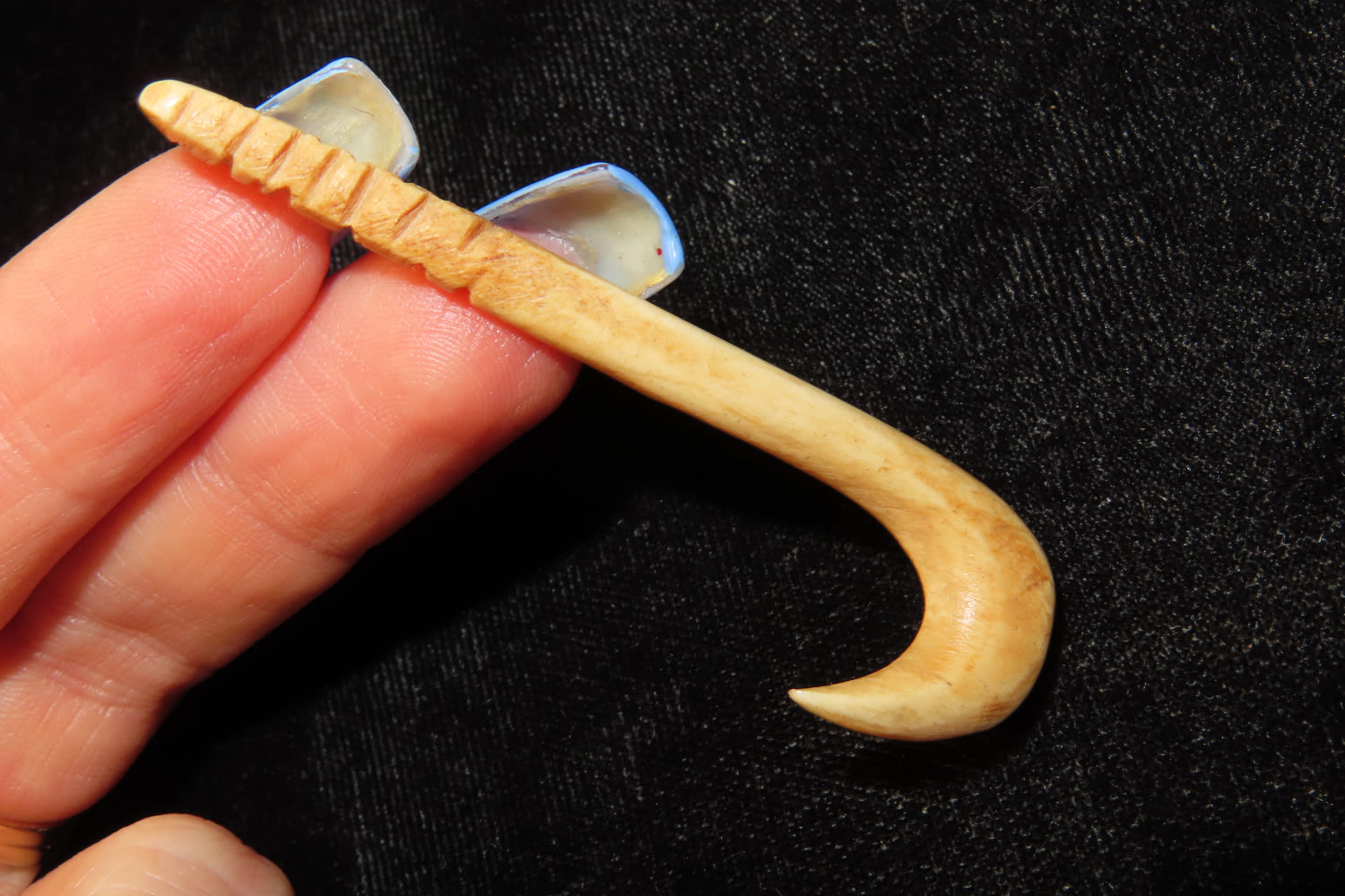 Bone Fish hook 2 3/8″ Mandan, Found in South Dakota EX. James Vroom Collection