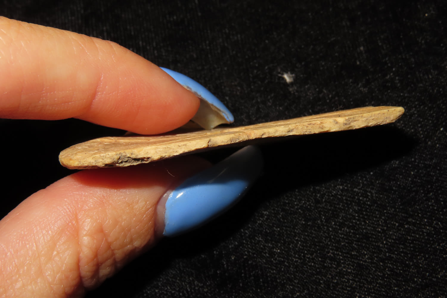 2 1/8″ Bone Gorget Mandan, Found in South Dakota EX. James Vroom Collection